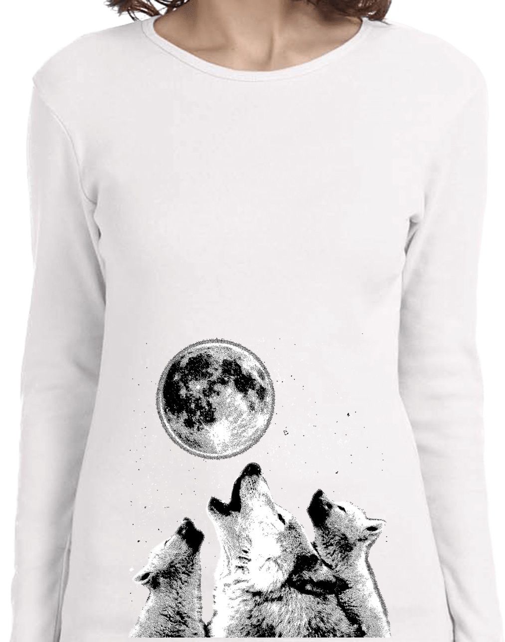 | | 3 Wolf Moon Bottom Print Ladies Long Sleeve Shirt3 Wolf Moon Bottom Print Ladies Long Sleeve Shirt A unique design including 3 wolves howling at the moon 100% cotton Deep Heather is a cotton/poly blend Available in Ladies Small, Ladies Medium, Ladies Large, Ladies XL & Ladies 2XL Also available in colors Black, Navy, Red, and White ![]() |