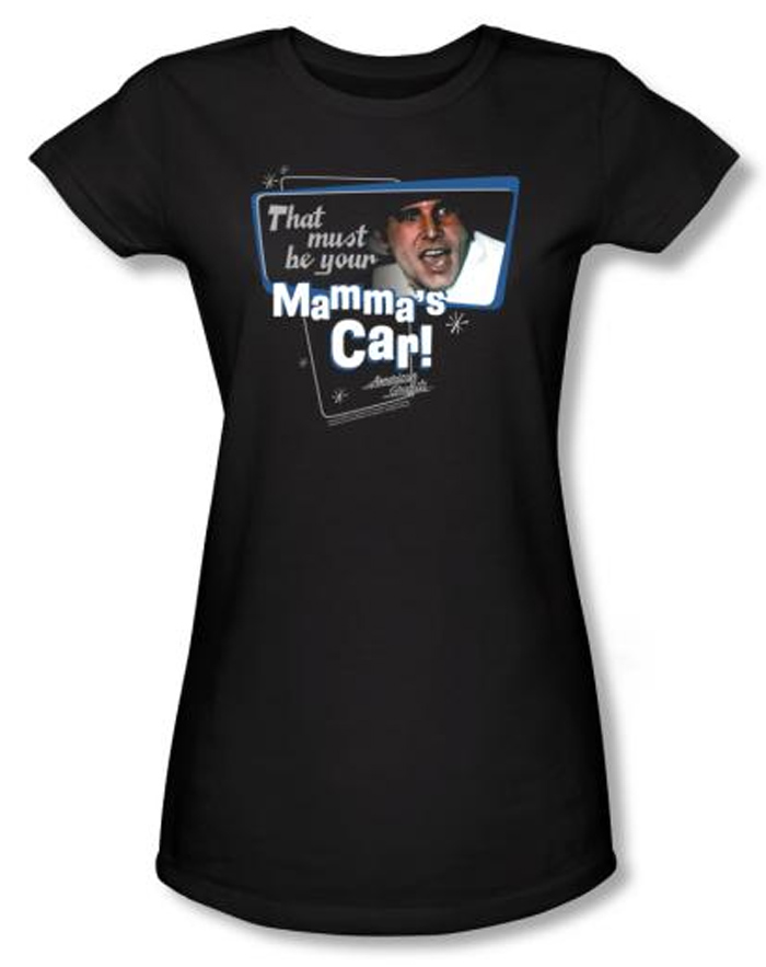 | | American Graffiti Juniors T-shirt Movie Mammas Car Black Tee ShirtThis American Graffiti Juniors Movie T-shirt Mammas Car Black Tee Shirt features a young and handsome image of Harrison Ford looking out of a car window with title That Must Be Your Mamma’s Car in silver and white lettering. This t shirts amazing fit makes an great gift for any fan celebrating the 1973 coming of age film American Graffiti written by George Lucas genesis being Lucas’ own teenage years in 1962 Modesto, CA and the study of the cruising and rock and roll cultures popular among the post-world War II Baby Boom Generation where Cindy Williams, Charles Martin Smith and Candy Clark together with many other now famous stars first appeared on the silver screen. Available in Small, Medium, Large, XL Officially Licensed |
