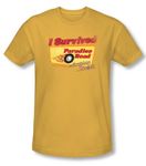 | | American Graffiti Juniors T-shirt Movie Paradise Road Gold Tee ShirtThis American Graffiti Juniors Movie T-shirt Paradise Road Gold Tee Shirt features a blazing wheel as it burns rubber racing down Paradise Road with title I survived Paradise Road in flaming red letters while movie title American Graffiti glitters in gold below. This t shirts makes an incredible gift for any fan as it celebrates the racing excitement of the 1973 coming of age film American Graffiti written by George Lucas whose character Bob Falfa played handsomely and arrogantly by Harrison Ford barely escapes his vehicle after it explodes thus surviving the treacherous Paradise Road. Available in Small, Medium, Large, XL Officially Licensed |