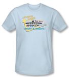| | American Graffiti Ladies T-shirt Movie Mels Drive In Light Blue ShirtThis American Graffiti Movie Ladies T-shirt Mel’s Diner Light Blue Tee Shirt features a classic image of Mel’s Diner with title American Graffiti in bright yellow above while words What a Night appear in blue green below. This t shirt makes a awesome gift for any fan celebrating the 1973 coming of age film American Graffiti written by George Lucas who challenged by Francis Ford Coppola to write a script appealing to mainstream audiences Lucas felt compelled to document his generations teenage experiences of cruising in Modesto, CA as a way of meeting girls. Available in Small, Medium, Large, XL, 2XL Officially Licensed |