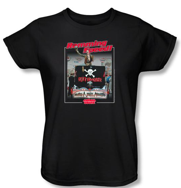 | | Animal House Ladies T-shirt Movie Ramming Speed Black Tee ShirtThis Animal House T-shirt Movie Ramming Speed Ladies Black Tee Shirt features a show stopping image of D-Day riding Deathmobile Float adorned with cross bones and jaws of steel topped with Ramming Speed and Deathmobile in red hot lettering with Animal House on fire below. Our t shirt makes an amazing gift or keepsake for any fan of National Lampoon's 1978 film Animal House directed by John Landis where Deltas constructed parade float “Deathmobile” with Flounder’s car as base wreaking havoc on school’s homecoming parade currently on sale on Craigslist with asking price of $19,998 1966 Lincoln Continental is powered by 340hp engine and lower section of tank style turret is made of plexi-glass so driver’s vision is not completely hinder. Available in Small, Medium, Large, XL, 2XL Officially Licensed |