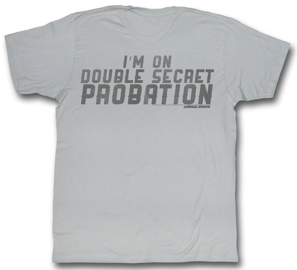 | | Animal House Shirt Double Secret Grey T-ShirtAnimal House Shirt Double Secret Grey T-Shirt This licensed Animal House shirt features Dean Wormer's classic phrase from the hit movie, Double Secret Probation in a distressed image. For any fan of the 1978 classic Animal House, this t-shirt is a must have! . Buy yours today! Officially Licensed Available in Small, Medium, Large, XL & 2XL ![]() |