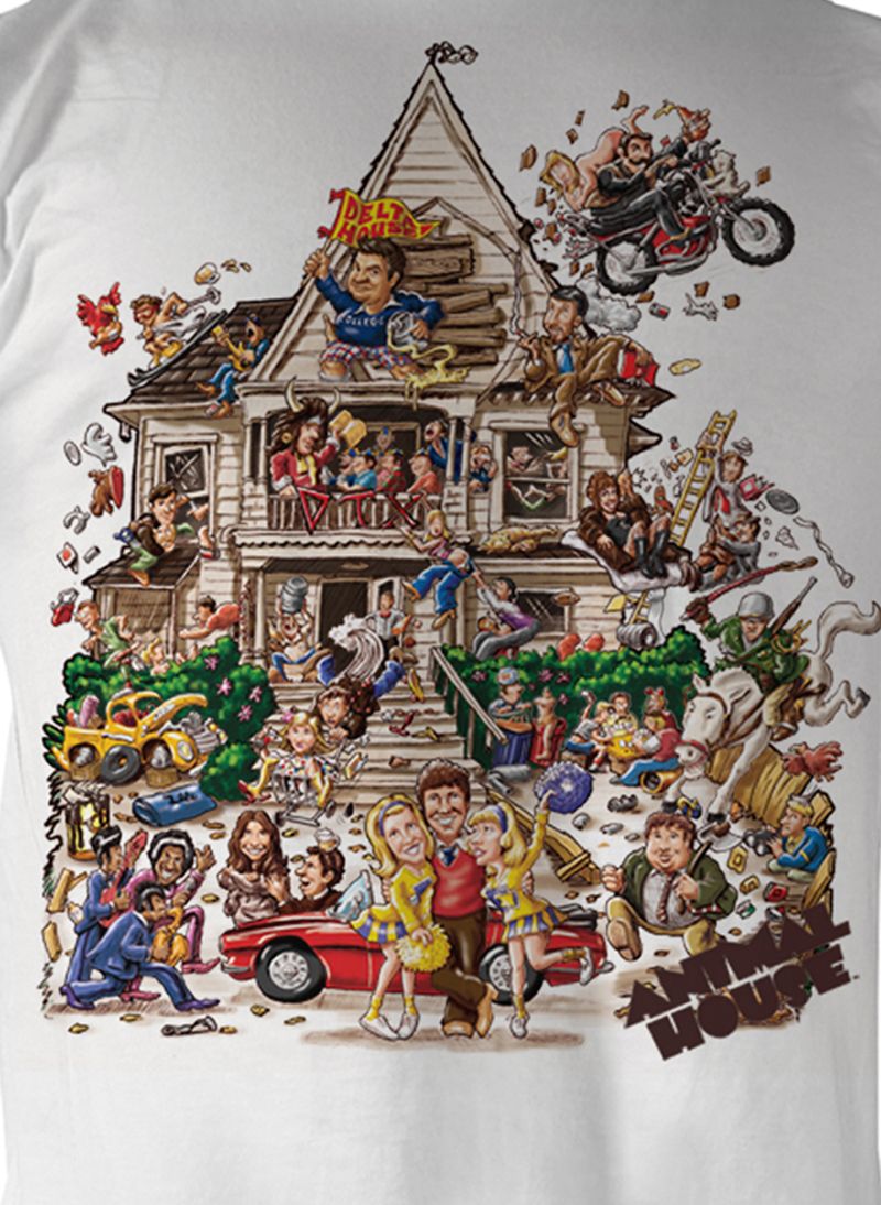 | | Animal House T-Shirt – House Adult White Tee ShirtThis Animal House T-Shirt House Adult White Tee Shirt features an amazing theatrical poster image of Animal House depicting caricatures of all characters of film engaged in zany antics in and around Delta House. Our t shirt makes a superb gift for any fan of National Lampoon's 1978 film Animal House directed by John Landis with National Lampoon being most popular humor magazine on college campuses in 1970s specializing in humor, satirized politics and popular culture with writers being recent college graduates such as Doug Kenney a Lampoon writer and magazine’s first editor-in-chief graduating from Harvard University in 69' having a college experience closer to the Omegas in film being President of University’s elite Spee Club. Available in Small, Medium, Large, XL, 2XL! Officially Licensed! |