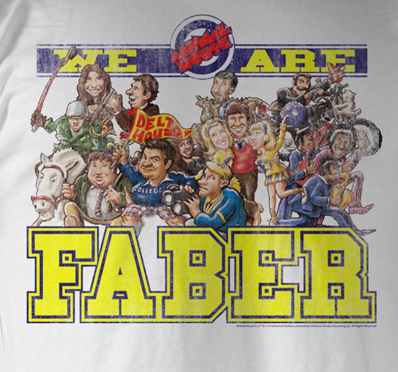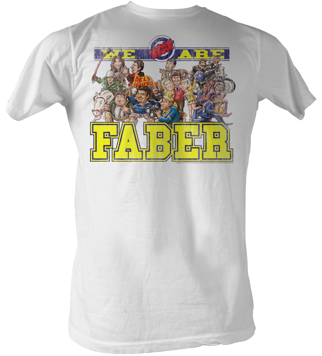 | | Animal House T-Shirt – Everybody Adult White Tee ShirtThis Animal House T-Shirt Everybody Adult White Tee Shirt features impressive theatrical poster image of words WE ARE FABER in neon yellow while caricatures of Animal House engage in hilarious antics. Our t shirt makes an outstanding gift for any fan of National Lampoon's 1978 film Animal House directed by John Landis whose first job was mail boy "go-fer" at 20th Century Fox then assistant director filming MGM's Kelly's Heroes in 69’ replacing original assistant director who suffered nervous breakdown worked as stunt double, dialogue coach, actor and production assistant finally moving to London to co-write The Spy Who Loved Me. Available in Small, Medium, Large, XL, 2XL! Officially Licensed! |
