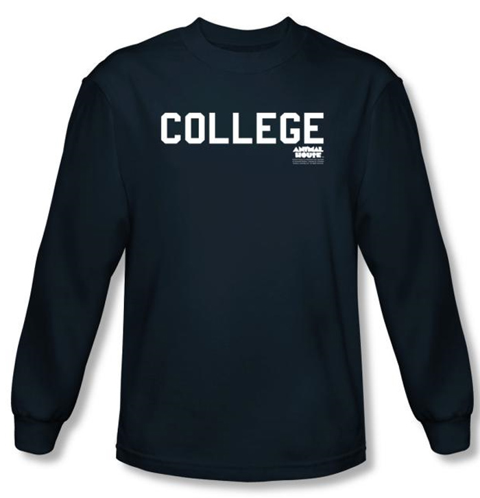 | | Animal House T-shirt Movie College Navy Blue Long Sleeve Tee ShirtThis Animal House T-shirt Movie College Navy Blue Long Sleeve Tee Shirt features a crisp classic image of COLLEGE in bold white lettering contrasting definitively against navy with Animal House logo just below. Our t shirts superb fit makes outstanding gift for any fan of National Lampoon's 1978 film Animal House directed by John Landis who staged his own antics while shooting film along with Bruce McGill staging a scene for reporters visiting set where director pretended to be angry at actor for being difficult on set Landis grabbed a breakaway pitcher and smashed it over McGill's head he fell to ground and pretended to be unconscious reporters were completely fooled and when Landis asked McGill to get up he refused to move. Available in Small, Medium, Large, XL, 2XL Officially Licensed |