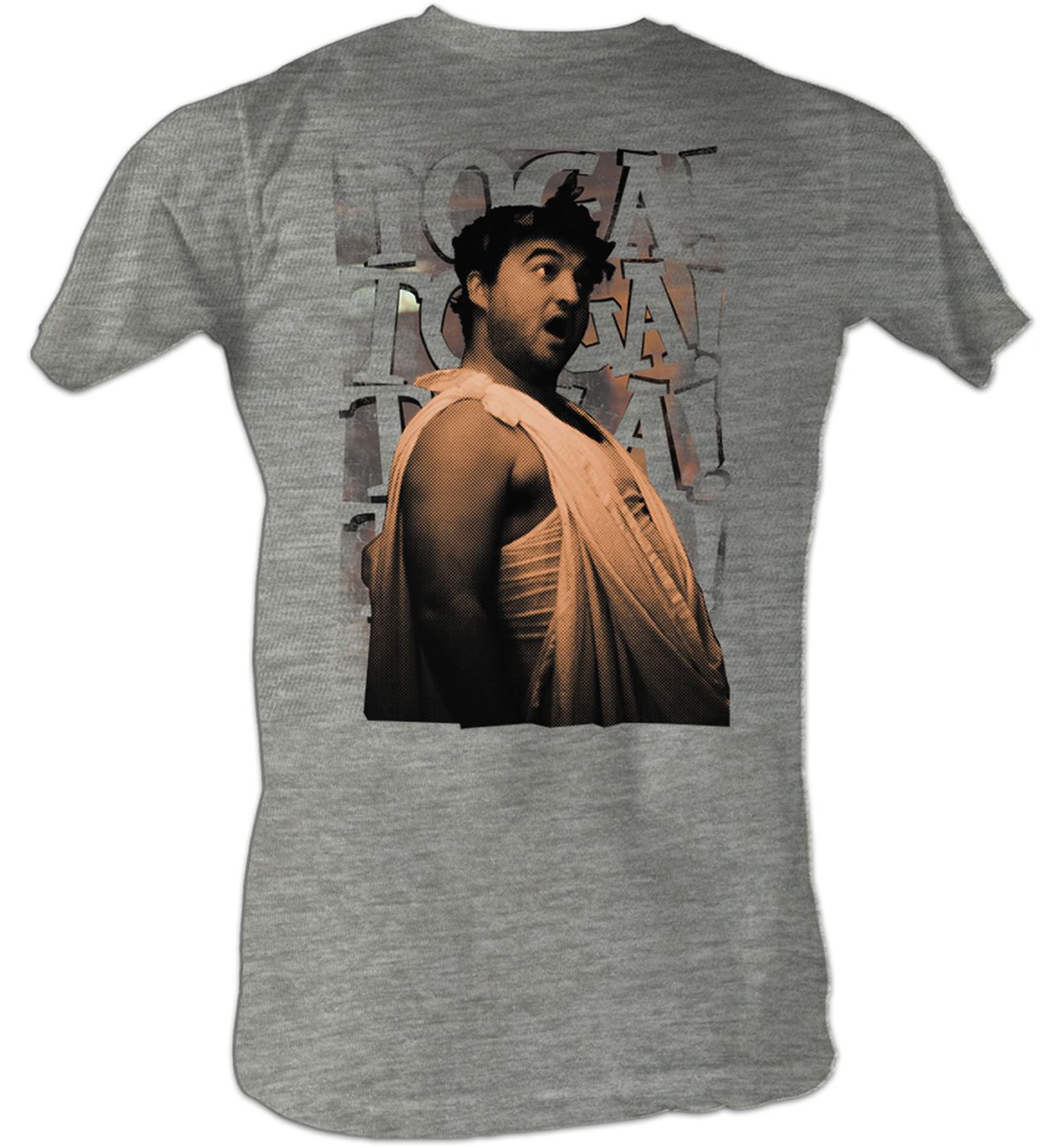 | | Animal House T-Shirt – Toga Chant Adult Gray Heather Tee ShirtThis Animal House T-Shirt Toga Chant Adult Gray Heather Tee Shirt features a sepia color image of John Belushi as “Bluto” adorned in toga and Laurel Crown with Toga! Toga! Toga! in backdrop. Our t shirt makes a nostalgic gift for any fan of National Lampoon's 1978 film Animal House directed by John Landis where in 2001 United States Library of Congress deemed Animal House "culturally significant" selecting it for preservation in National Film Registry, No. 1 on Bravo's 100 Funniest Movies, No. 36 on AFI’s 100 Years...100 Laughs list of 100 best American comedies and in 2008 Empire Magazine selected film as one of The 500 Greatest Movies of All Time. Available in Small, Medium, Large, XL, 2XL! Officially Licensed! |