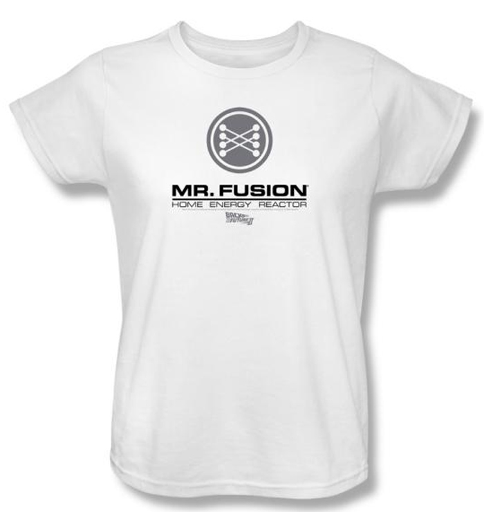 | | Back To The Future II Ladies T-shirt Movie Mr. Fusion Logo White ShirtThis Back To The Future II T-shirt Movie Mr. Fusion Logo Ladies White Tee Shirt features a crisp sharp image of Mr. Fusion Logo and Home Energy Reactor appearing in pewter gray while Mr. Fusion pops in black as it hits white. Our t shirt makes a sensational gift or keepsake of the Back To The Future film trilogy starring Elizabeth Shue as Jennifer who although typecast as a girl next door starred in the more racy 1995 film Leaving Las Vegas earning her an Academy Award nomination for Best Actress, nomination for a BAFTA Golden Globe and SAG Award for Best Actress winning Best Actress at Independent Spirit Awards Los Angeles Film Critics Association Awards and the National Society of Film Critics Awards. Available in Small, Medium, Large, XL, 2XL Officially Licensed |