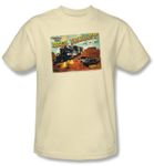 | | Back To The Future III Kids T-shirt Movie Hill Valley Postcard CreamThis Back To The Future III T-shirt Hill Valley Postcard Slim Fit Adult Tee Shirt features a nostalgic postcard image of Greetings from Hill Valley 1855 with jet black Central Pacific Locomotive 131 contrasting dramatically alongside DeLorean Time Machine. Our t shirts incredible fit makes an fantastic gift for any fan capturing essence of Back to the Future Part III directed by Robert Zemeckis where engine normally cruised at 25 mph with a top speed of 55 but "fearless" engineer Frank Fargo allegedly pushed speed to nearly 70 past Verde Junction. Available in Small(6-8), Medium(10-12), Large(14-16), & XL(18-20) Officially Licensed |