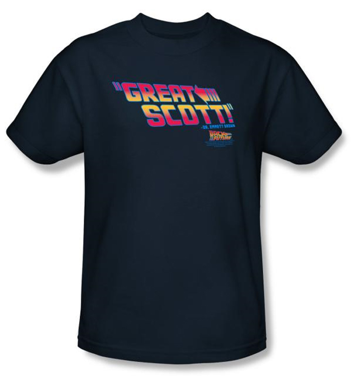 | | Back To The Future Kids T-shirt Movie Great Scott Navy Shirt YouthThis Back To The Future Kids T-shirt Movie Great Scott Navy Tee Shirt Youth features Doc Brown’s expression “Great Scott!” in neon yellow and pink outlined in light blue vibrant against navy with Back To The Future resting below. Our t shirt makes an outstanding gift for any fan of Back To The Future a 1985 adventure comedy film where Doc Brown is sometimes involved in illegal enterprises and naiveté to repercussions attempts to obtain items needed for his inventions excitedly tells Marty how he cheated Libyan Terrorists out of stolen plutonium "they wanted me to build them a bomb so I took their plutonium and in turn gave them a shoddy bomb casing full of used pinball machine parts!” Great Scott! Available in Small(6-8), Medium(10-12), Large(14-16), & XL(18-20)! Also available in Toddler sizes: Small (4), Medium (5/6), & Large (7)! AVAILABLE IN ADULTS SIZES. Officially Licensed |