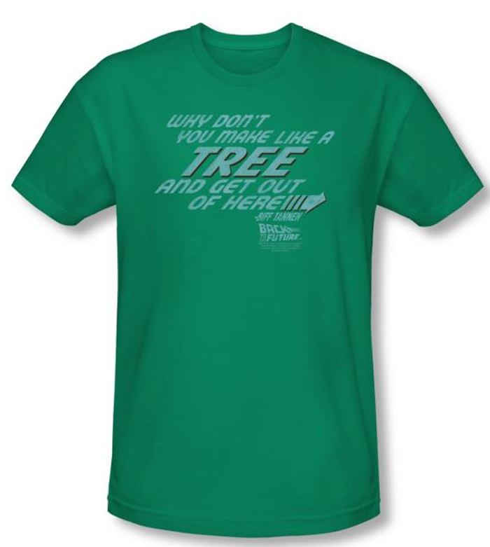 | | Back To The Future Kids T-shirt Make Like A Tree Green Shirt YouthThis Back To The Future Kids T-shirt Make Like A Tree Green Tee Shirt Youth features Biff’s catchphrase classic “Why Don’t You Make Like a Tree and Get Out of Here!” in deep teal lettering contrasting vibrantly against green. Our t shirt makes an outstanding gift or keepsake for any fan of Back To The Future a 1985 adventure comedy film and of Biff Tannen played by Thomas F. Wilson who with rise in popularity of Back to the Future series received many questions about his experiences making the films finding the repetitive nature of questions to be so amusing he wrote a song entitled "Biff's Question Song" featured regularly in his stand-up routine. Available in Small(6-8), Medium(10-12), Large(14-16), & XL(18-20)! Also available in Toddler sizes: Small (4), Medium (5/6), & Large (7)! AVAILABLE IN ADULTS SIZES. Officially Licensed! |