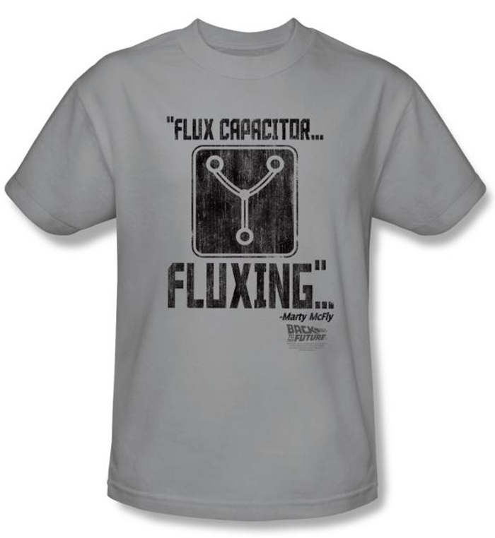 | | Back To The Future T-shirt Movie Fluxing Adult Silver Tee ShirtThis Back To The Future T-shirt Movie Fluxing Adult Silver Tee Shirt features an awesome image of “Flux Capacitor…Fluxing…” – Marty McFly making a bold statement in black letters contrasting intensely against silver. Our t shirt makes a remarkable gift for any fan of Back To The Future a 1985 adventure comedy film starring the flux capacitor which consists of a regularly squared compartment with three flashing Geissler style-tubes arranged in a "Y" configuration and described by Doc as "what makes time travel possible" the device is the core component of the DeLorean time machine! Available in Small, Medium, Large, XL, 2XL & 3XL Officially Licensed |