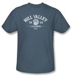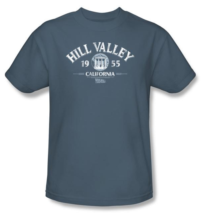 | | Back To The Future T-shirt Movie Hill Valley 1955 Adult Slate ShirtThis Back To The Future T-shirt Movie Hill Valley 1955 Adult Slate Tee Shirt features a classic image of Hill Valley above while Hill Valley Courthouse is nestled between 1955 with California appearing below in athletic white distressed lettering poignantly against slate. Our t shirt makes a excellent gift for any fan of the Back To The Future film trilogy where producers considered filming town square scenes in real city of Petaluma, California soon realizing it would be prohibitively expensive and impractical to alter a real place to suit different eras instead filming on Universal Studios back lot where they had more control with main location being Courthouse Square which already existed and was previously used for many films and television shows. Available in Small, Medium, Large, XL, 2XL & 3XL Officially Licensed |