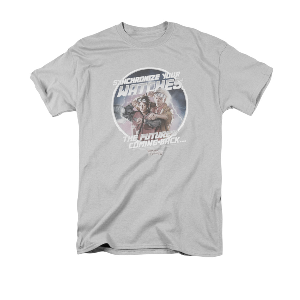 | | Back To The Future Shirt Synchronize Watches Adult Silver Tee T-ShirtBack To The Future Shirt Synchronize Watches Adult Silver Tee T-Shirt Officially Licensed Available in Small, Medium, Large, XL, 2XL & 3XL Our Back To The Future shirts is an American comic science fiction-adventure series film perfect for any fans of this action movie. ![]() |