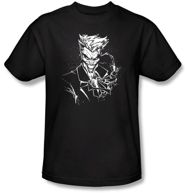 This Batman t-shirt features BATMAN JOKER'S SPLATTER SMILE design.