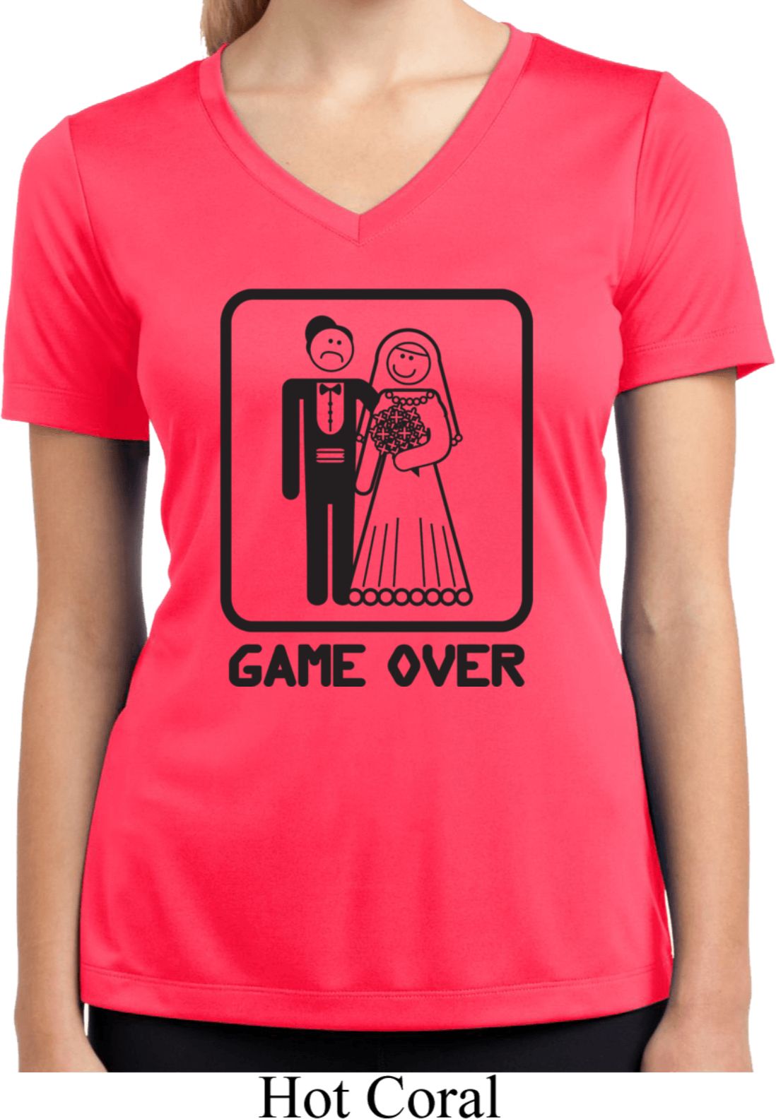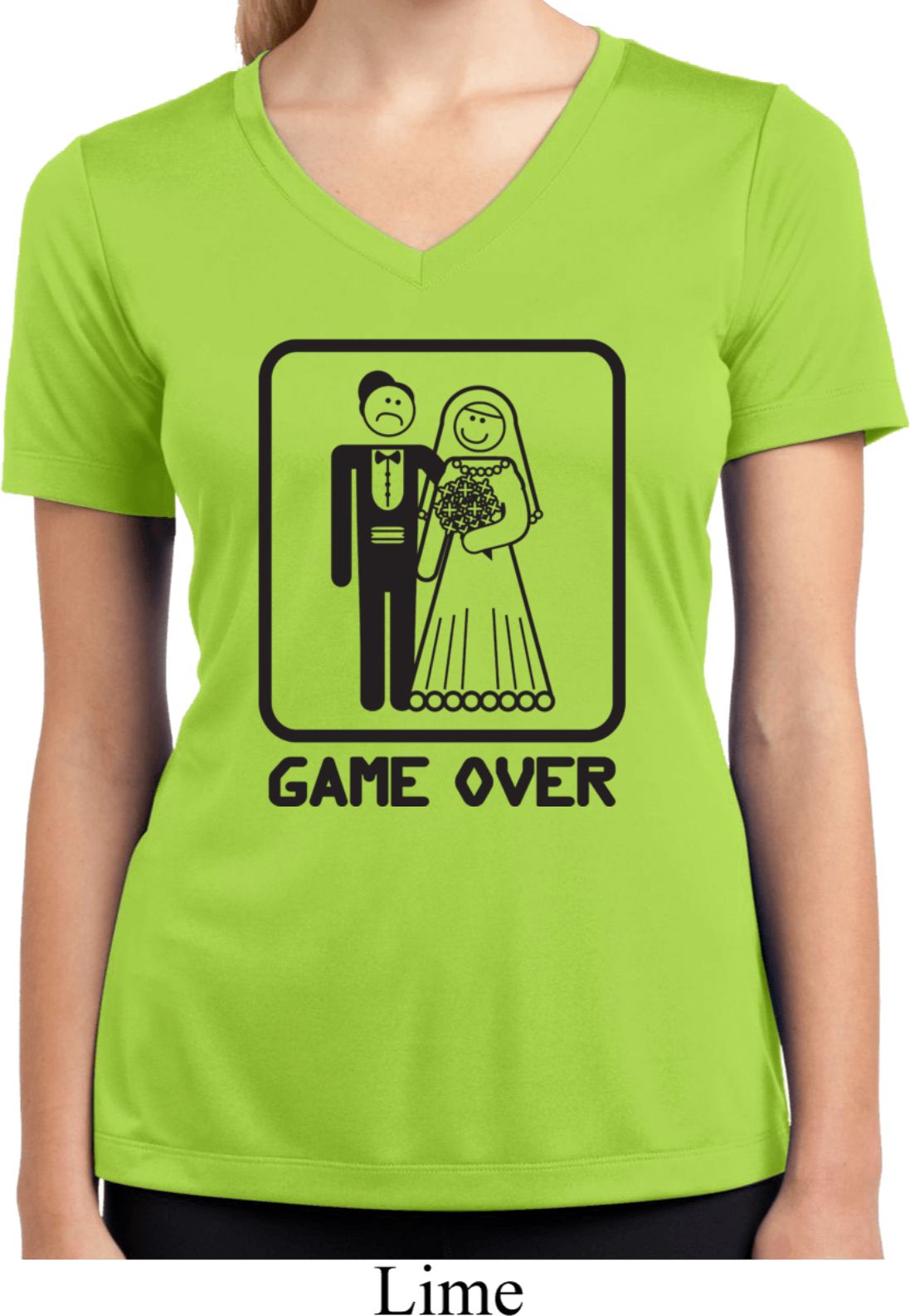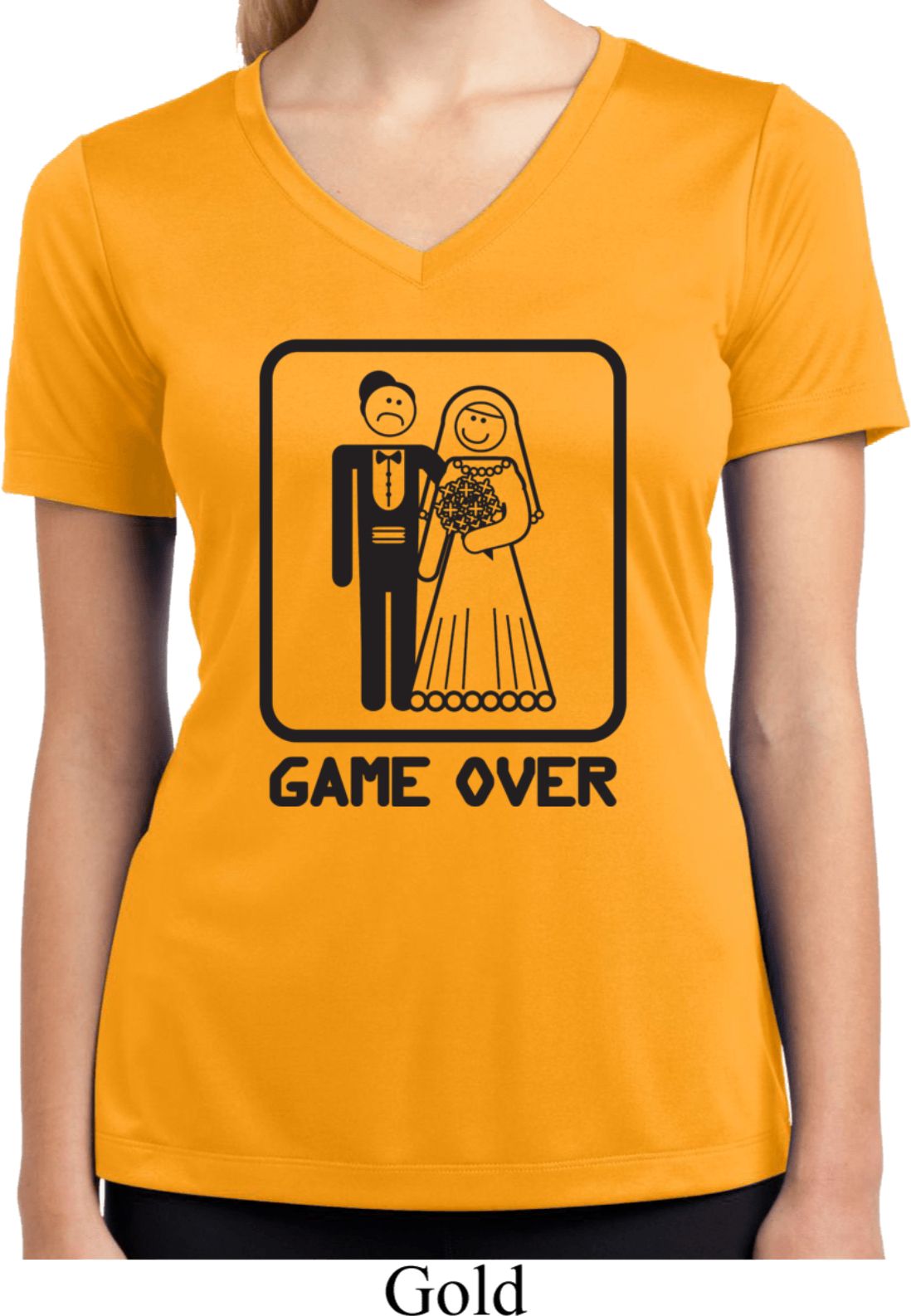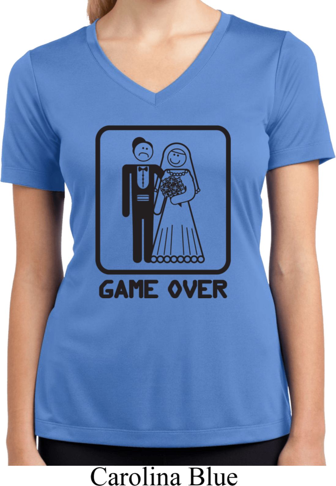 | | Black Game Over Ladies Moisture Wicking V-neck ShirtBlack Game Over Ladies Moisture Wicking V-neck Shirt A perfect gift for our newlyweds 100% polyester Available in Ladies Small, Ladies Medium, Ladies Large, Ladies XL, Ladies 2XL & Ladies 3XL Also available in colors Carolina Blue, Deep Orange, Gold, Hot Coral, Lime, Pink Orchid, Pink Raspberry, Red, Royal, Tropic Blue, and White |