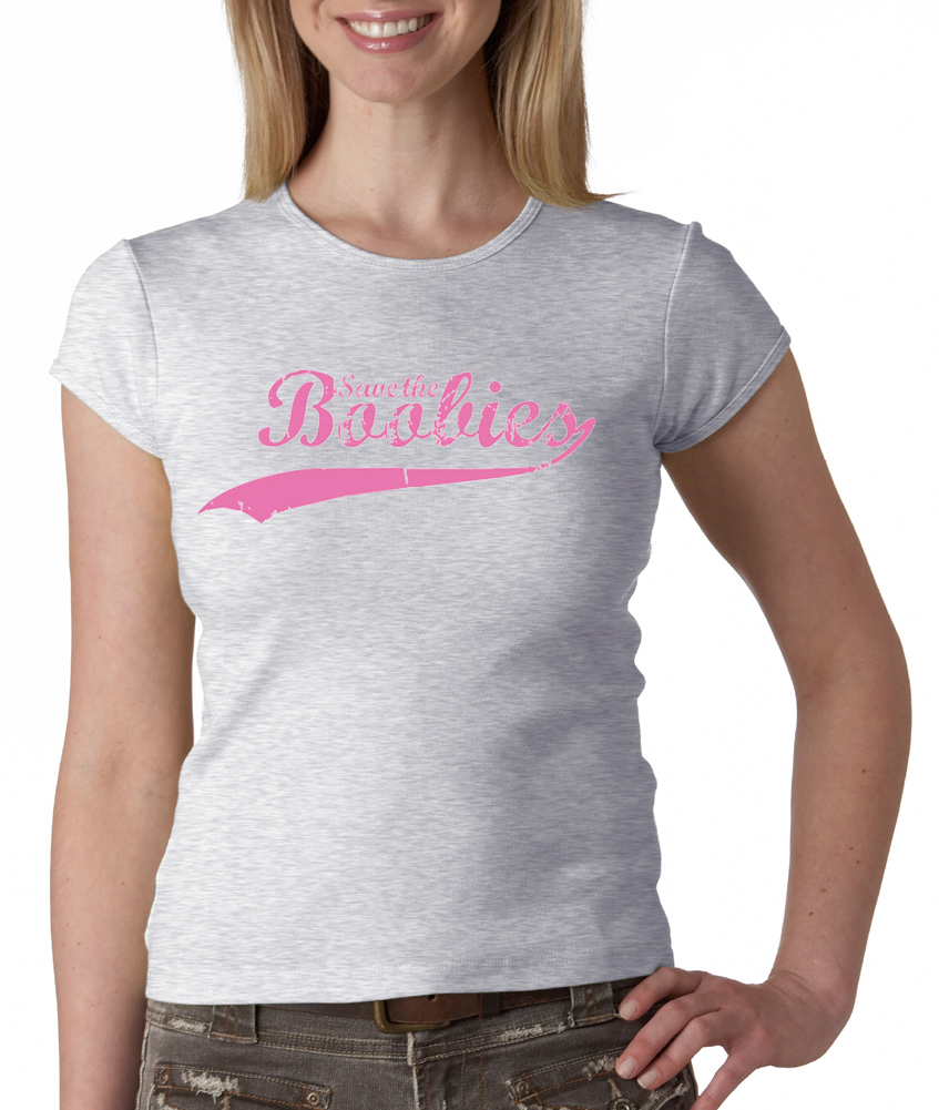 Breast Cancer Ladies T-shirt - Crewneck Save The Boobies Grey TeeBreast Cancer Ladies T-shirt - Crewneck Save The Boobies Grey Tee
