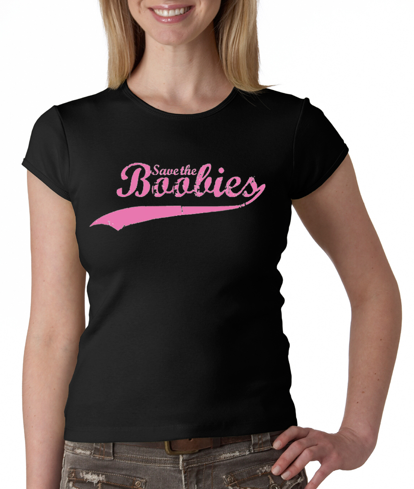Breast Cancer Ladies T-shirt - Crewneck Save The Boobies Black TeeBreast Cancer Ladies T-shirt - Crewneck Save The Boobies Black Tee