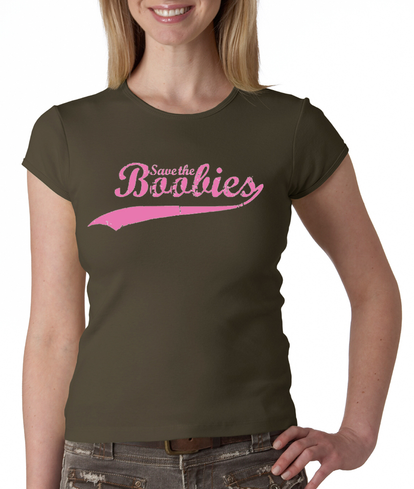 Breast Cancer Ladies T-shirt - Crewneck Save The Boobies Brown TeeBreast Cancer Ladies T-shirt - Crewneck Save The Boobies Brown Tee