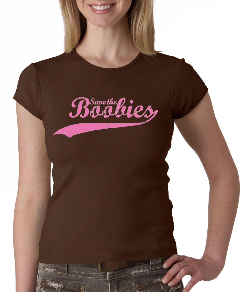 Breast Cancer Ladies T-shirt - Crewneck Save The Boobies Brown TeeBreast Cancer Ladies T-shirt - Crewneck Save The Boobies Brown Tee