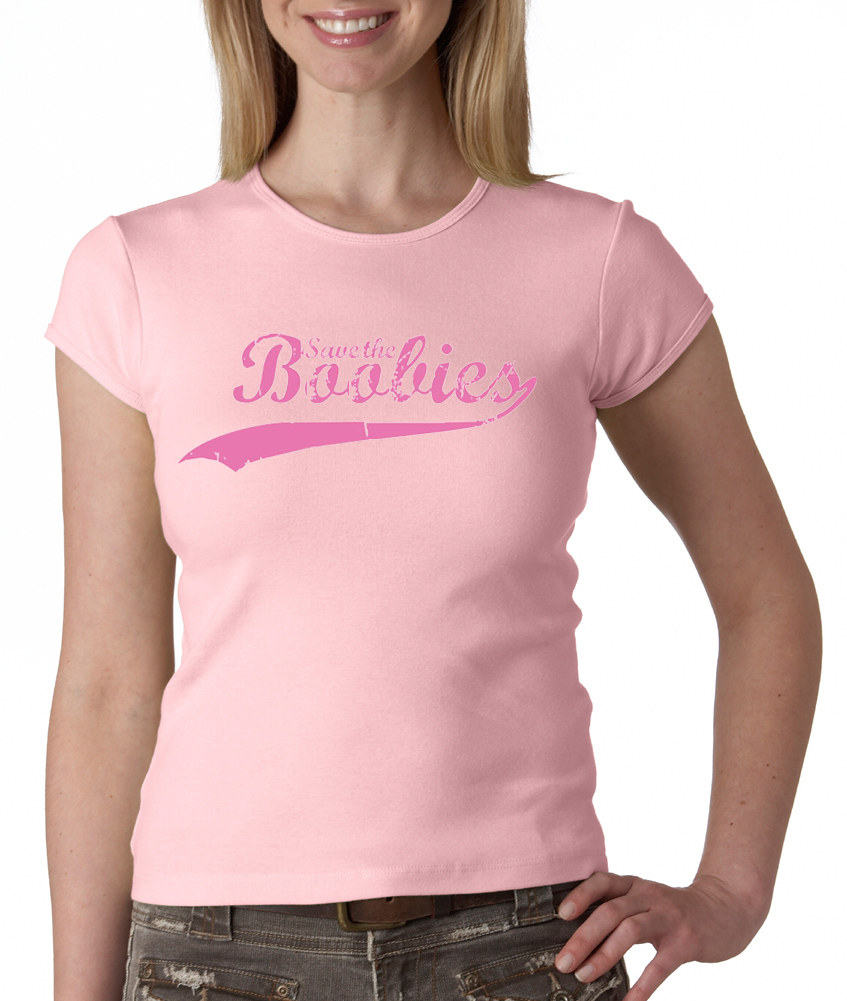 Breast Cancer Ladies T-shirt - Crewneck Save The Boobies Pink TeeBreast Cancer Ladies T-shirt - Crewneck Save The Boobies Pink Tee