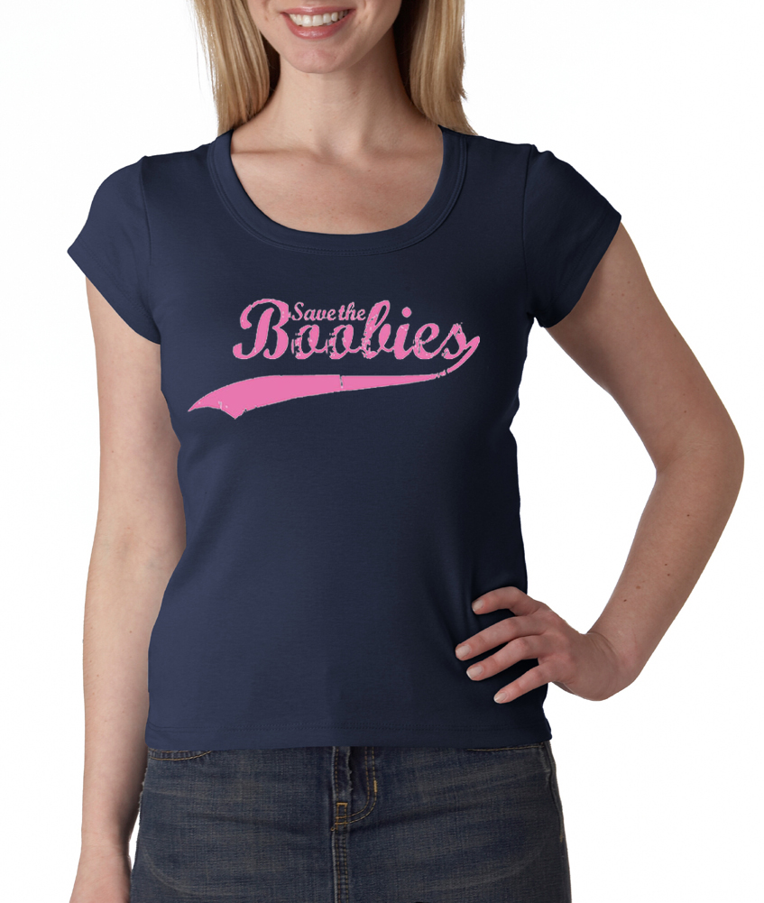 Breast Cancer Ladies T-shirt Scoop Neck Save The Boobies Navy TeeBreast Cancer Ladies T-shirt Scoop Neck Save The Boobies Navy Tee