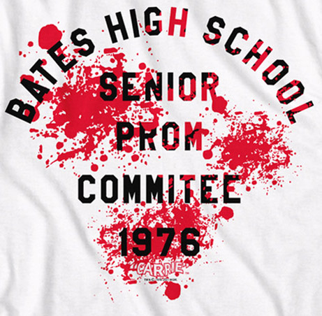 This classic horror movie tee shirt features Bates High School's Senior Prom Committee of 1976