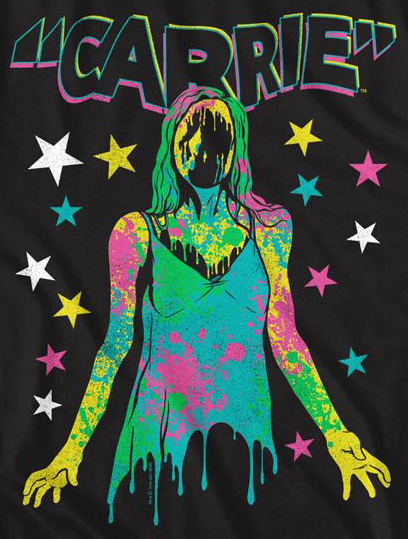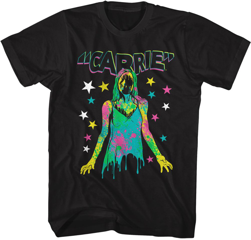 This classic horror movie tee shirt a color splattered design
