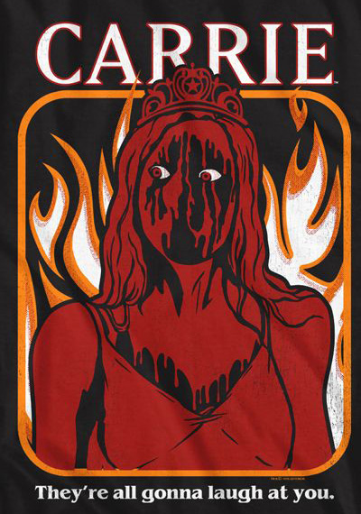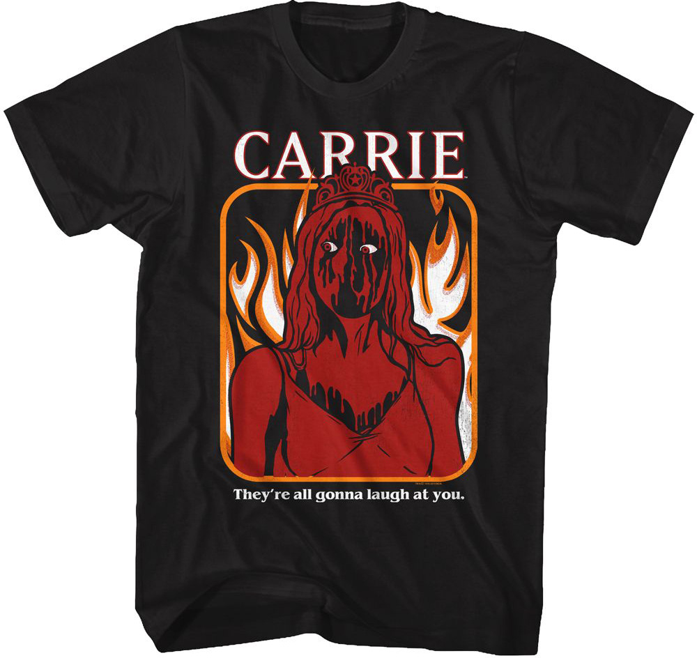 This classic horror movie tee shirt reads "They're all gonna laugh at you"