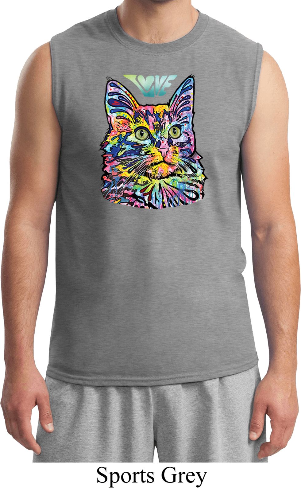 | | Cat Shirt Love Cat Muscle ShirtA mens muscle shirt featuring a colorful cat portrait with Love written above. Our mens sleeveless shirt makes a perfect gift for cat lovers! Made of 100% cotton. (Sports Grey is made with a blend of cotton/poly) Available in sizes Small through 2XL. Machine wash cold with like colors; dry low heat. ![]() |