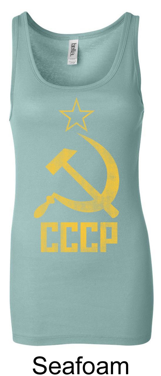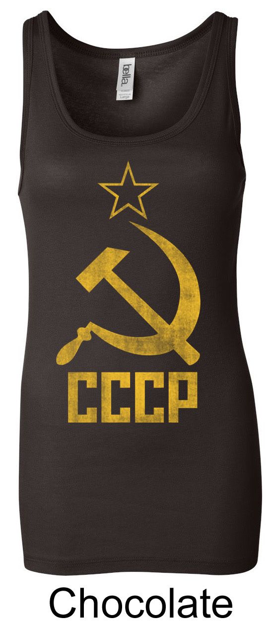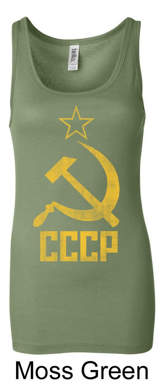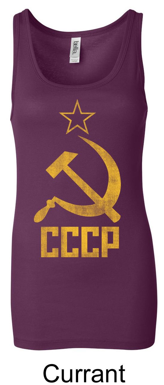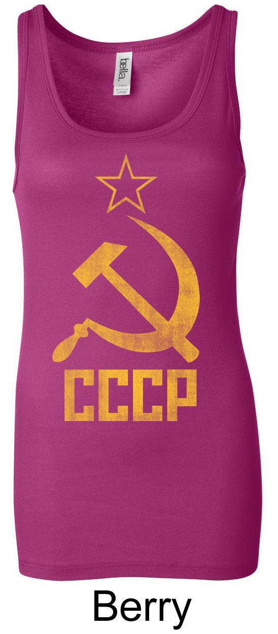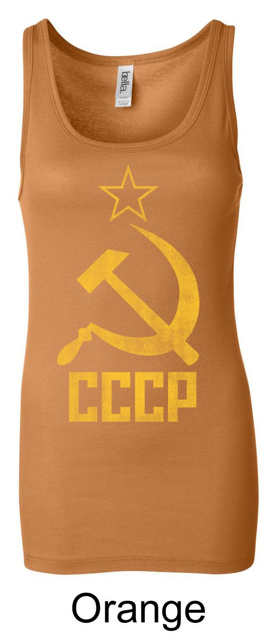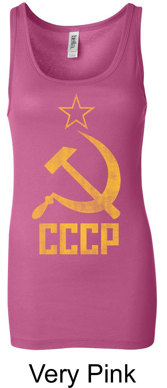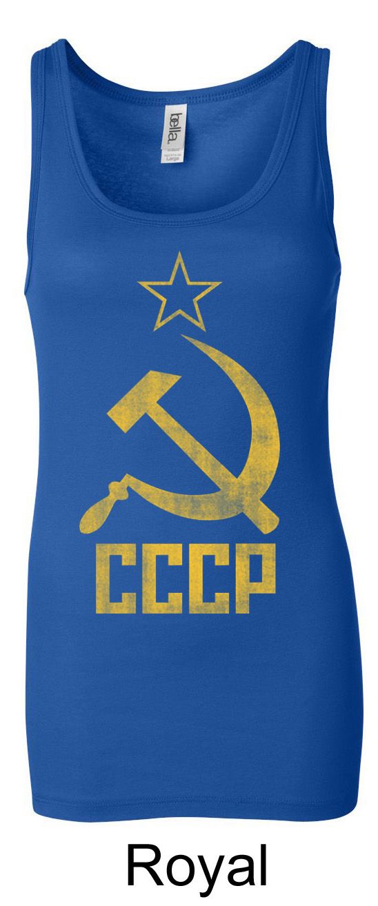 | | CCCP Tank Distressed Soviet Union Ladies Longer Length TanktopAvailable in Ladies Small, Ladies Medium, Ladies Large, Ladies XL & Ladies 2XL Also available in colors Team Purple, Berry, Black, Chocolate, Cream, Currant, Light Aqua, Moss Green, Orange, Pale Blue, Plum, Red, Royal, Seafoam, Very Pink, & White |
