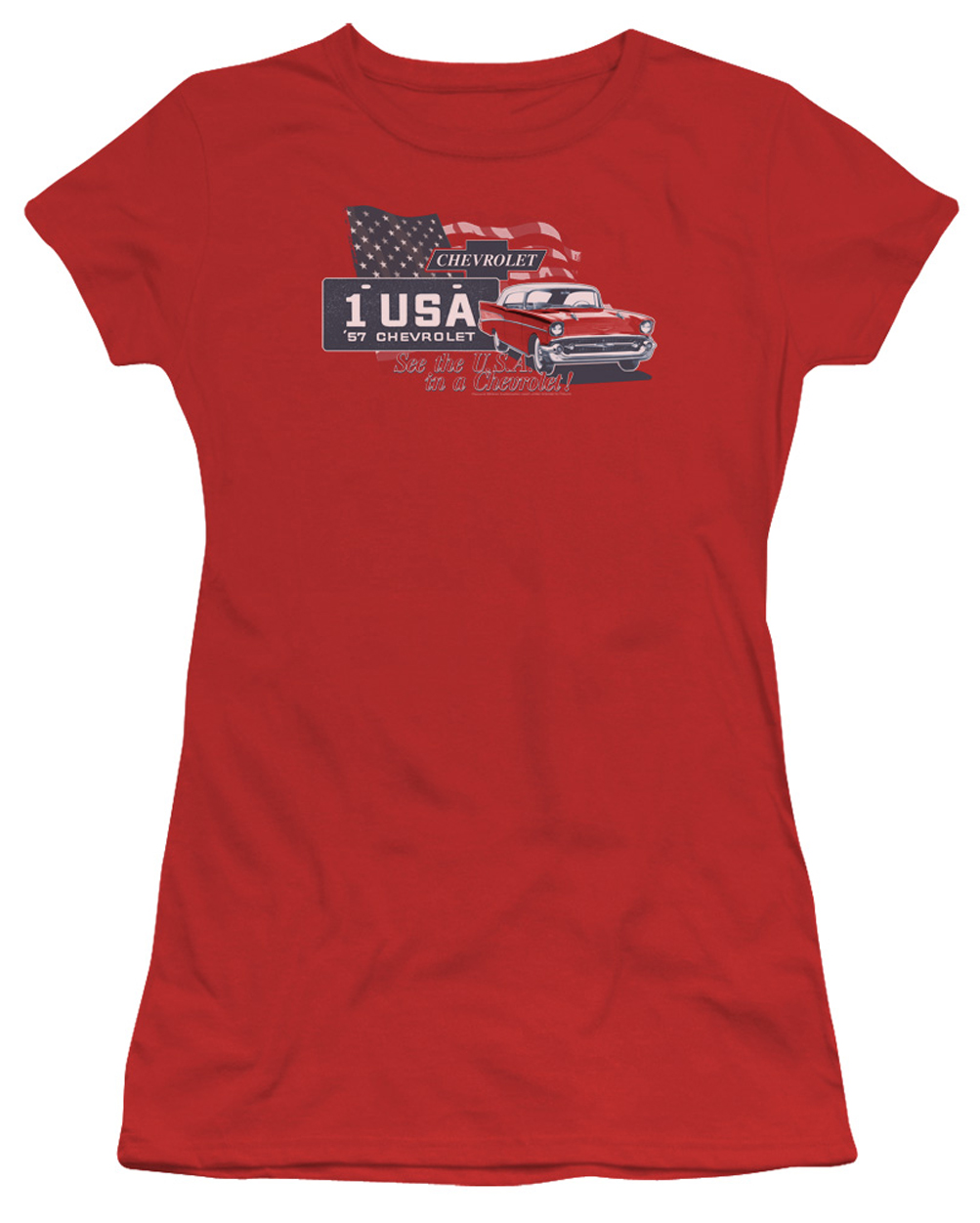| | Chevy Juniors Shirt See The USA Chevrolet Red T-ShirtChevy Juniors Shirt See The USA Chevrolet Red T-Shirt This Chevy juniors shirt features a well-loved, American classic, 1957 Chevrolet with the words See The USA in a Chevrolet. Chevrolet, Chevy for short, is one of the top American Auto Companies and is under GM Motors. Show your love for Chevy by sporting one of our classic Chevy T-shirts. Buy yours today! 100% Cotton, Pre-Shrunk And Machine Washable Officially Licensed Available in Small, Medium, Large, XL, 2XL ![]() |