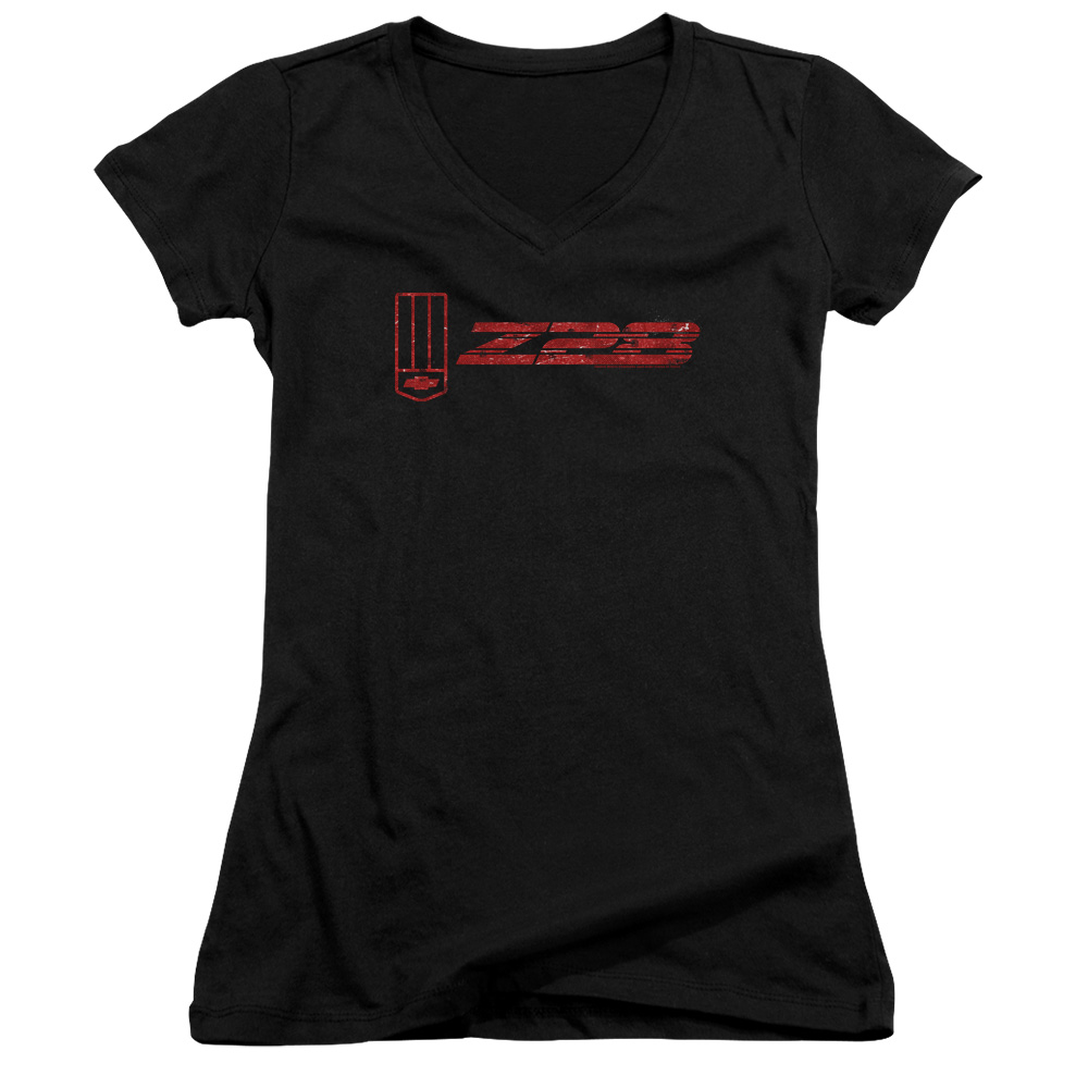 Chevy Juniors V Neck Shirt Camaro Z28 Logo Black T-Shirt