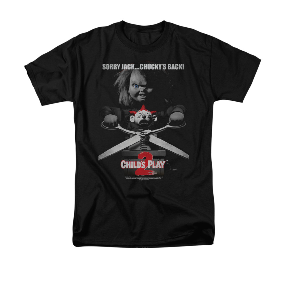 | | Child's Play 2 Shirt Jack Poster Adult Black Tee T-ShirtChild's Play 2 Shirt Jack Poster Adult Black Tee T-Shirt Officially Licensed Available in Small, Medium, Large, XL, 2XL & 3XL Our Child's Play 2 shirts is a serial killing doll Chucky film perfect for any fans of action movie. ![]() |