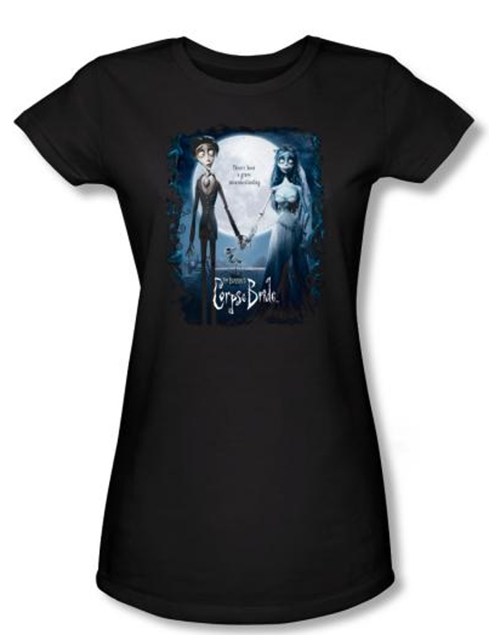 | | Corpse Bride Juniors T-Shirt Warner Bros Movie Poster Black ShirtThis Corpse Bride Warner Bros American animated fantasy musical movie film juniors t-shirt features from the movie poster of the Corpse Bride. Based on the classic movie, a must for any fan!! Our Corpse Bride tee shirt is an incredible t-shirt for any true Corpse Bride movie fan. This movie is about Set in a 19th century European village, this stop-motion, animated feature follows the story of Victor a young man who is whisked away to the underworld and wed to a mysterious Corpse Bride, while his real bride, Victoria, waits bereft in the land of the living. Though life in the Land of the Dead proves to be a lot more colorful than his strict Victorian upbringing, Victor learns that there is nothing in this world, or the next, that can keep him away from his one true love. Available in Small, Medium, Large, XL! Officially Licensed! |