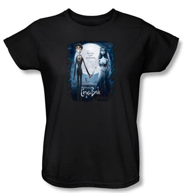 | | Corpse Bride Ladies T-Shirt Warner Bros Movie Poster Black ShirtThis Corpse Bride Warner Bros American animated fantasy musical movie film ladies t-shirt features from the movie poster of the Corpse Bride. Based on the classic movie, a must for any fan!! Our Corpse Bride tee shirt is an incredible t-shirt for any true Corpse Bride movie fan. This movie is about Set in a 19th century European village, this stop-motion, animated feature follows the story of Victor a young man who is whisked away to the underworld and wed to a mysterious Corpse Bride, while his real bride, Victoria, waits bereft in the land of the living. Though life in the Land of the Dead proves to be a lot more colorful than his strict Victorian upbringing, Victor learns that there is nothing in this world, or the next, that can keep him away from his one true love. Available in Small, Medium, Large, XL, 2XL Officially Licensed! |