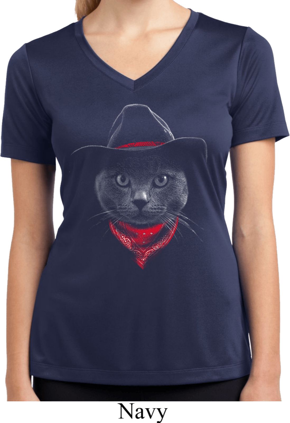 | | Cowboy Cat Ladies Dry Wicking V-neckA ladies dry wicking v-neck featuring a cute cat wearing a bandana and cowboy hat. A perfect gift for cat lovers everywhere. Our ladies tee is made of 100% polyester. Available in sizes Small through 3XL. Machine wash cold with like colors; dry low heat. ![]() |