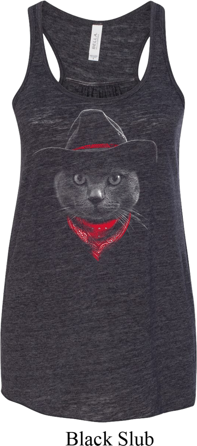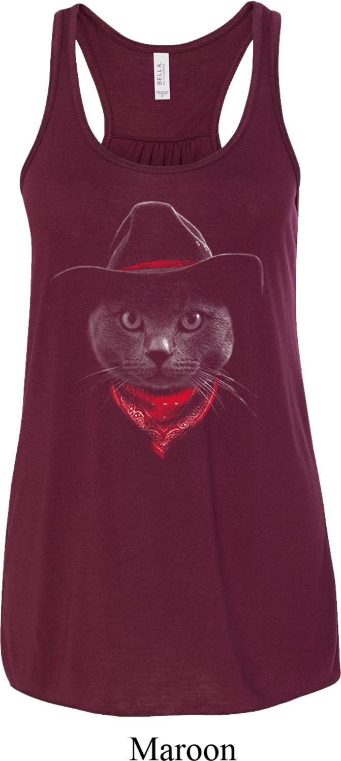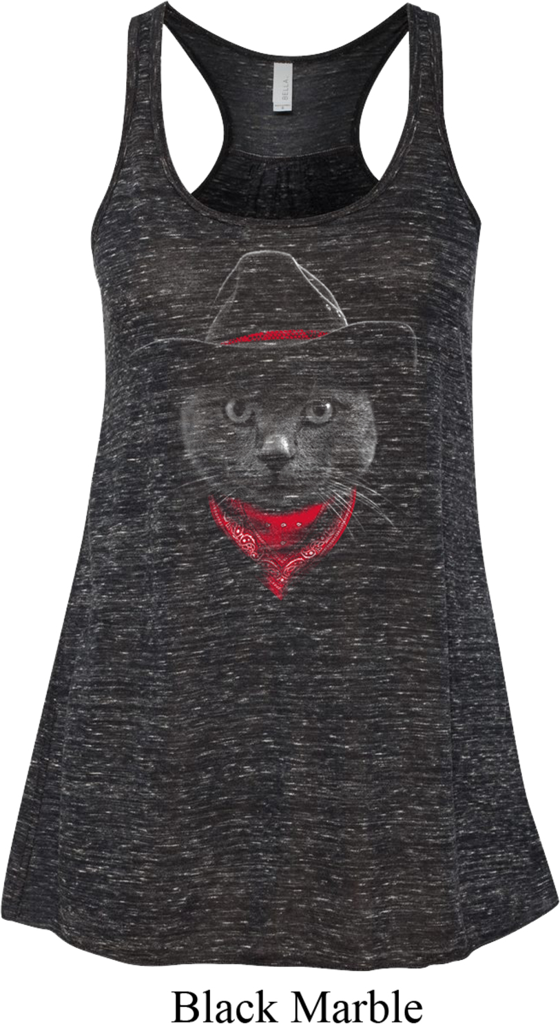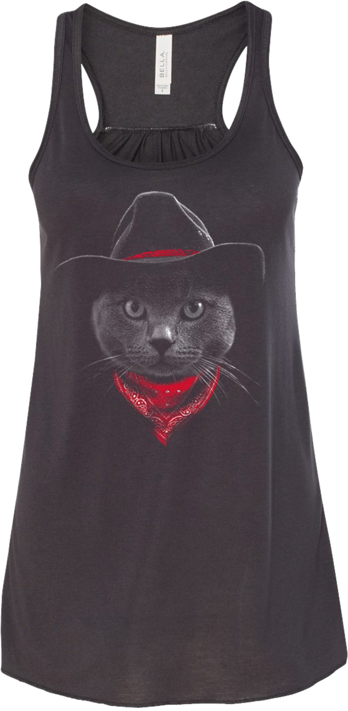 | | Cowboy Cat Ladies Flowy RacerbackA ladies flowy racerback featuring a cute cat wearing a bandana and cowboy hat. A perfect gift for cat lovers everywhere. Solid colors are made of poly/rayon; Marble colors are made of poly/cotton. Available in sizes Small through 2XL. Machine wash cold with like colors; dry low heat. ![]() |