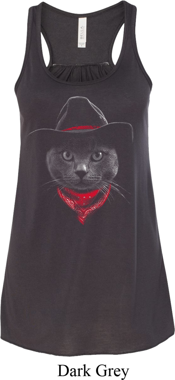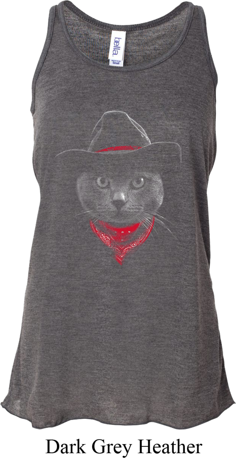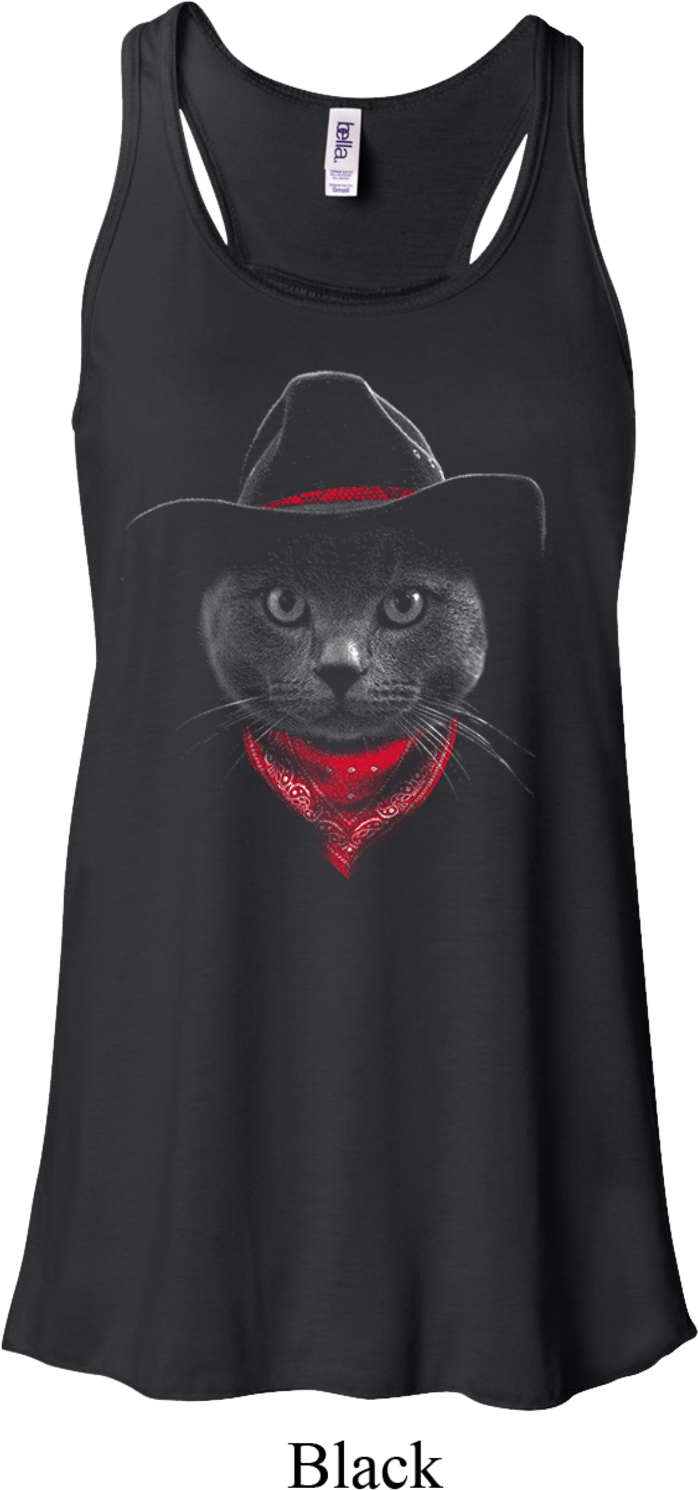 | | Cowboy Cat Ladies Flowy RacerbackA ladies flowy racerback featuring a cute cat wearing a bandana and cowboy hat. A perfect gift for cat lovers everywhere. Solid colors are made of poly/rayon; Marble colors are made of poly/cotton. Available in sizes Small through 2XL. Machine wash cold with like colors; dry low heat. ![]() |