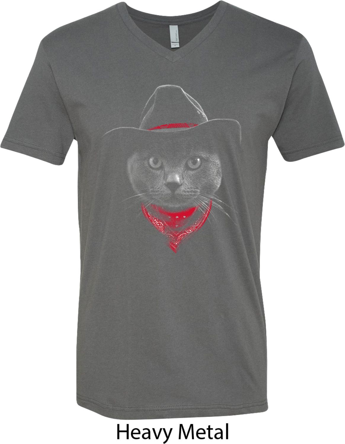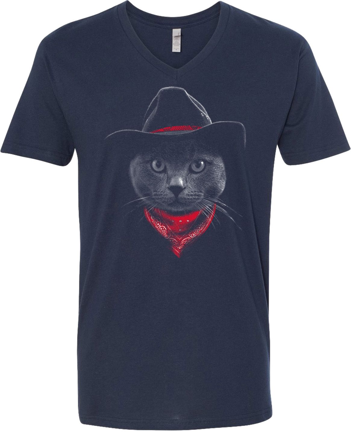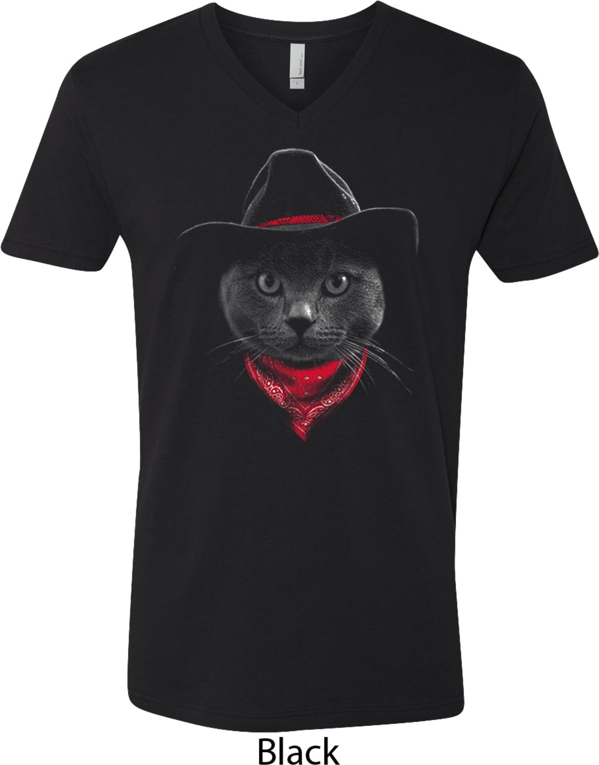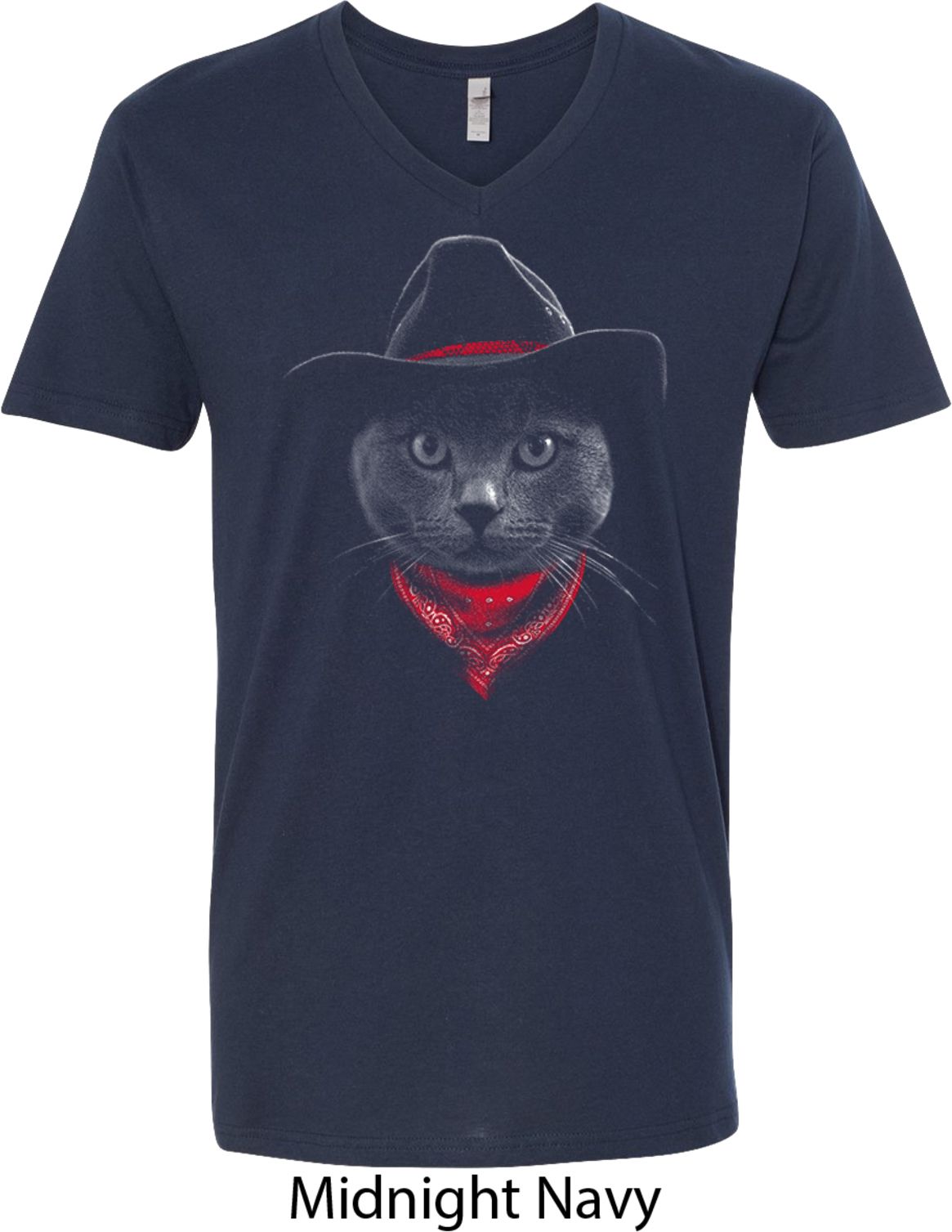 | | Cowboy Cat V-neck ShirtA mens v-neck featuring a cute cat wearing a bandana and cowboy hat. A perfect gift for cat lovers everywhere. Our mens tee is made of 100% cotton. Available in sizes Small through 2XL. Machine wash cold with like colors; dry low heat. ![]() |