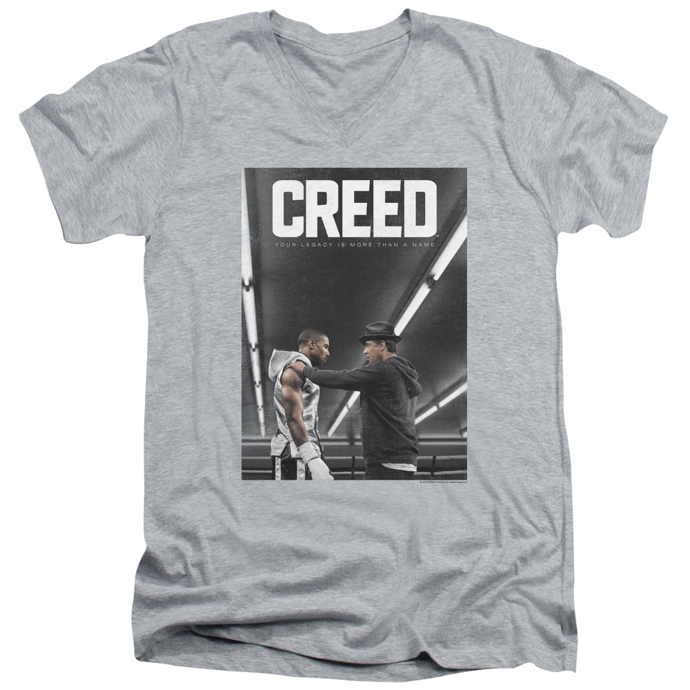 | | Creed Slim Fit V-Neck Shirt Movie Poster Athletic Heather T-ShirtCreed Slim Fit V-Neck Shirt Movie Poster Athletic Heather T-Shirt Our Creed shirt makes a great gift for any Rocky fan. Creed is a sports movie based the Rocky sequels. Adonis Johnson never knew his famous father, boxing champion Apollo Creed, who died before Adonis was born. He seeks out Rocky Balboa and asks the retired champ to be his trainer. Rocky sees much of Apollo in Adonis, and agrees to mentor him, even as he battles an opponent deadlier than any in the ring. With Rocky's help, Adonis soon gets a title shot, but whether he has the true heart of a fighter remains to be seen. 100% Cotton, Pre-Shrunk And Machine Washable Officially Licensed Available in Small, Medium, Large, XL, 2XL ![]() |