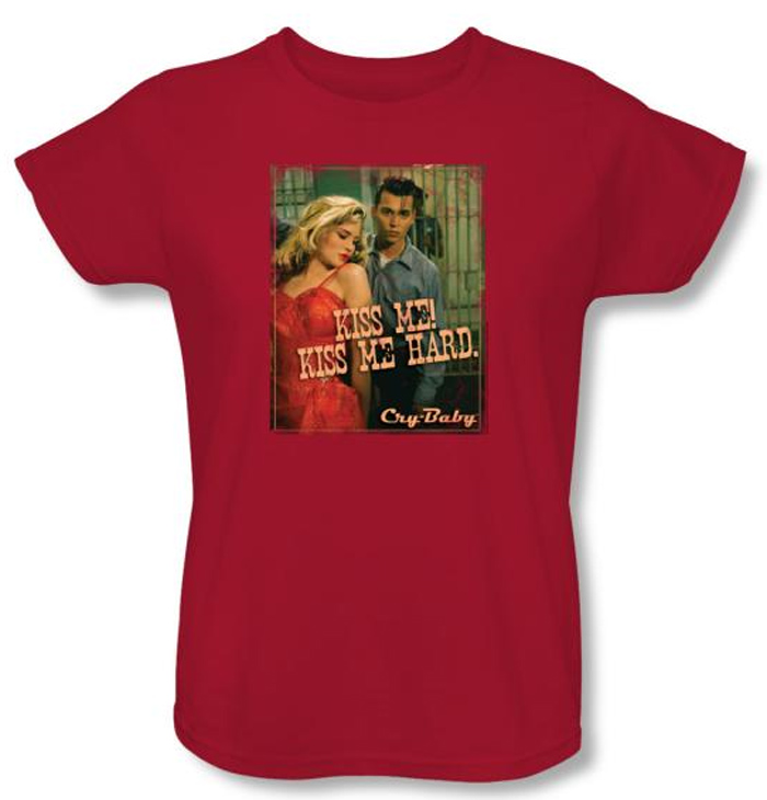 | | Cry Baby Ladies T-shirt Movie Kiss Me Red Tee ShirtThis Cry Baby T-shirt Movie Kiss Me Ladies Red Tee Shirt is simply stunning featuring a colorful image of the innocent Wade “Cry Baby” Walker while serving time in penitentiary unfairly behind bars with Allison in a red hot dress with her quote Kiss Me! Kiss Me Hard as movie title appears below. Our t shirt makes an fabulous gift for any fan of 1990 musical-teen film Cry Baby written and directed by John Waters whose childhood friend and muse Glenn Milstead, Divine, was to be cast as "Hatchetface" but suddenly died in March 1988 prior to production leaving Waters to cast Kim McGuire who he hired almost immediately after her audition noting that week she just randomly sent pictures to 6 casting directors and Paula Herold who was casting Reversal of Fortune claiming she had a reversal of fortune by landing Cry-Baby. Available in Small, Medium, Large, XL, 2XL Officially Licensed |