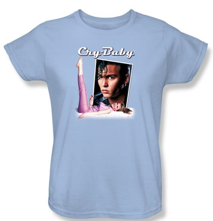 | | Cry Baby Ladies T-shirt Movie Title Light Blue Tee ShirtThis Cry Baby T-shirt Movie Title Ladies Light Blue Tee Shirt features an image of the Theatrical Release Poster with large photo of Wade “Crybaby” Walker Johnny Depp alongside girlfriend Allison Amy Locane dreamingly lying on her bed with movie title above in bright white letters against baby blue. Our t shirt makes an superb gift for any fan of 1990 musical-teen film Cry Baby written and directed by John Waters starring Traci Lords as the wild and free-spirited Wanda Woodward who at 18 began studying method acting at the Lee Strasberg Theatre Institute soon after starring in a remake of Roger Corman’s film Not of This Earth with other movies including Blade, Tommyknockers, Black Mask 2: City of Masks and Chump Change for which she won a Best Actress Award at the U.S. Comedy Arts Festival. Available in Small, Medium, Large, XL, 2XL & 3XL Officially Licensed |