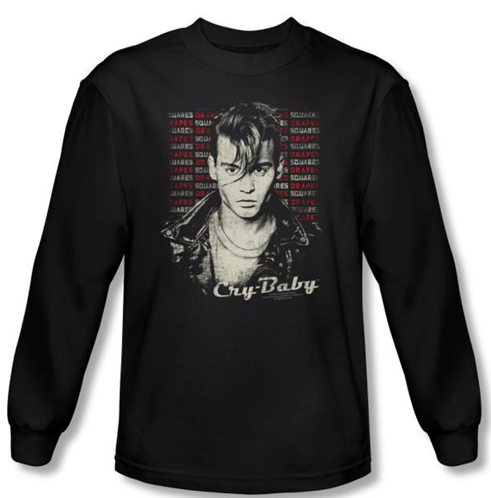 Cry Baby T-shirt Movie Drapes & Squares Black Long Sleeve Tee Shirt