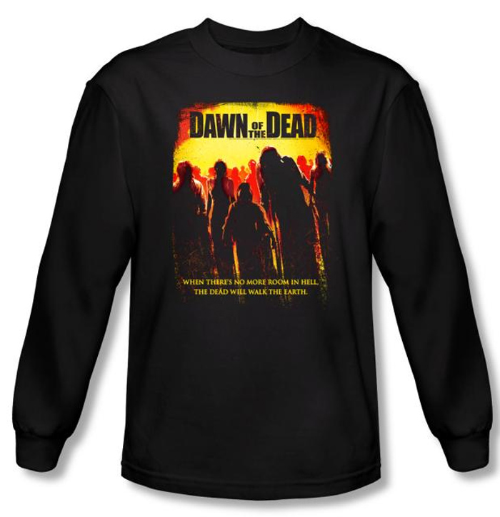 | | Dawn Of The Dead T-shirt Movie Title Black Long Sleeve Tee ShirtThis Dawn Of The Dead T-shirt Movie Title Black Long Sleeve Tee Shirt features an eerie image of the Dead walking through hellish flames of yellow and red as title Dawn of The Dead looms above while slogan When There’s No More Room in Hell the Dead Will Walk The Earth echoes below. This t shirts comfortable fit makes the perfect gift for any fan of Dawn of the Dead a 2004 horror film directed by Zack Snyder a remake of George A. Romero's 1978 film which includes cameo appearances by members of original cast Ken Foree playing an evangelist asserting God’s punishing mankind Scott H. Reiniger plays army general tells everyone stay home for safety and Tom Savini plays the Monroeville Sheriff explaining only way to kill zombies is "shoot 'em in the head." Available in Small, Medium, Large, XL, 2XL Officially Licensed |