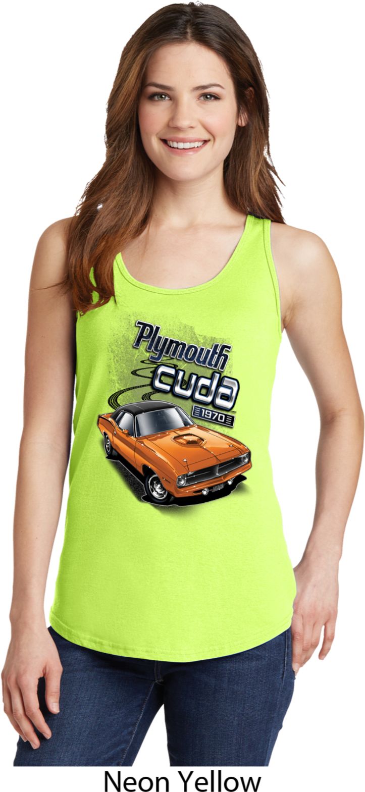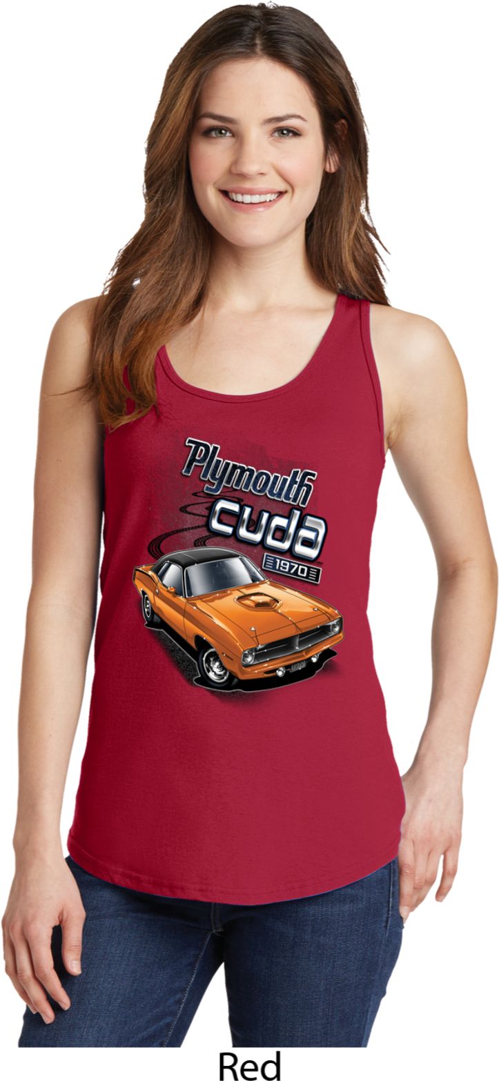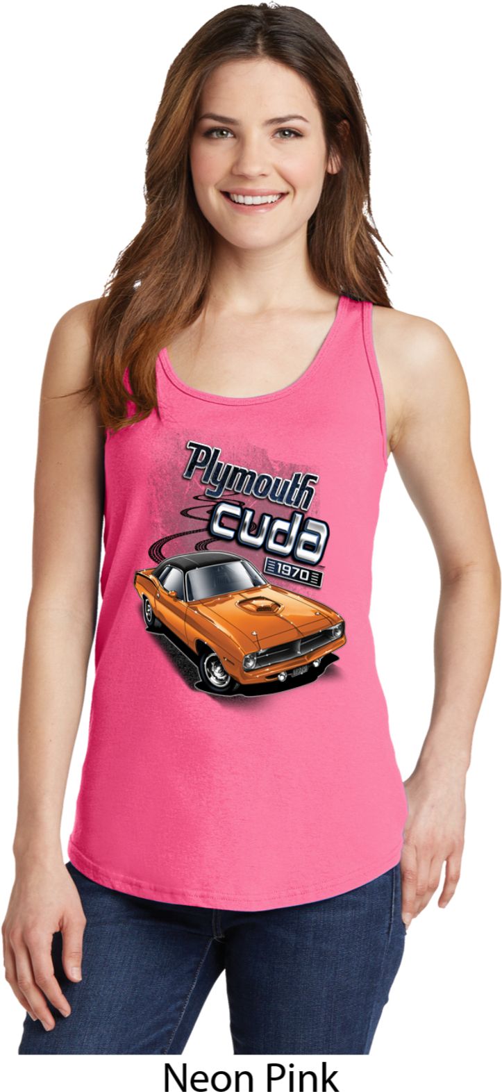 | | Dodge 1970 Plymouth Hemi Cuda Ladies Tank TopDodge 1970 Plymouth Hemi Cuda Ladies Tank Top A great shirt for someone who loves Dodge 100% cotton Neon and heather colors are a blend of cotton/poly Available in Ladies Small, Ladies Medium, Ladies Large, Ladies XL, Ladies 2XL, Ladies 3XL & Ladies 4XL Also available in colors Athletic Heather, Charcoal, Jet Black, Navy, Neon Blue, Neon Green, Neon Pink, Neon Yellow, Red, Royal, and White ![]() |