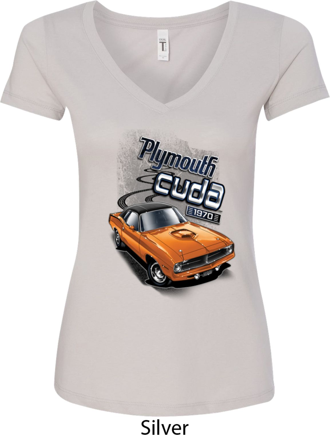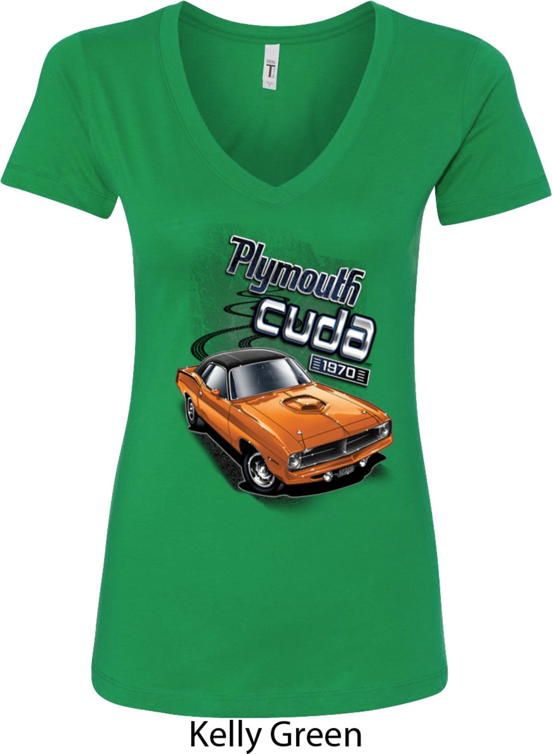 | | Dodge 1970 Plymouth Hemi Cuda Ladies V-Neck ShirtDodge 1970 Plymouth Hemi Cuda Ladies V-Neck Shirt A great shirt for someone who loves Dodge A cotton/poly blend Available in Ladies Small, Ladies Medium, Ladies Large, Ladies XL & Ladies 2XL Also available in colors Banana, Black, Dark Grey, Hot Pink, Indigo, Kelly, Midnight, Military, Purple Rush, Raspberry, Red, Royal, Silver, Tahiti, Turquoise, Warm Grey, and White |