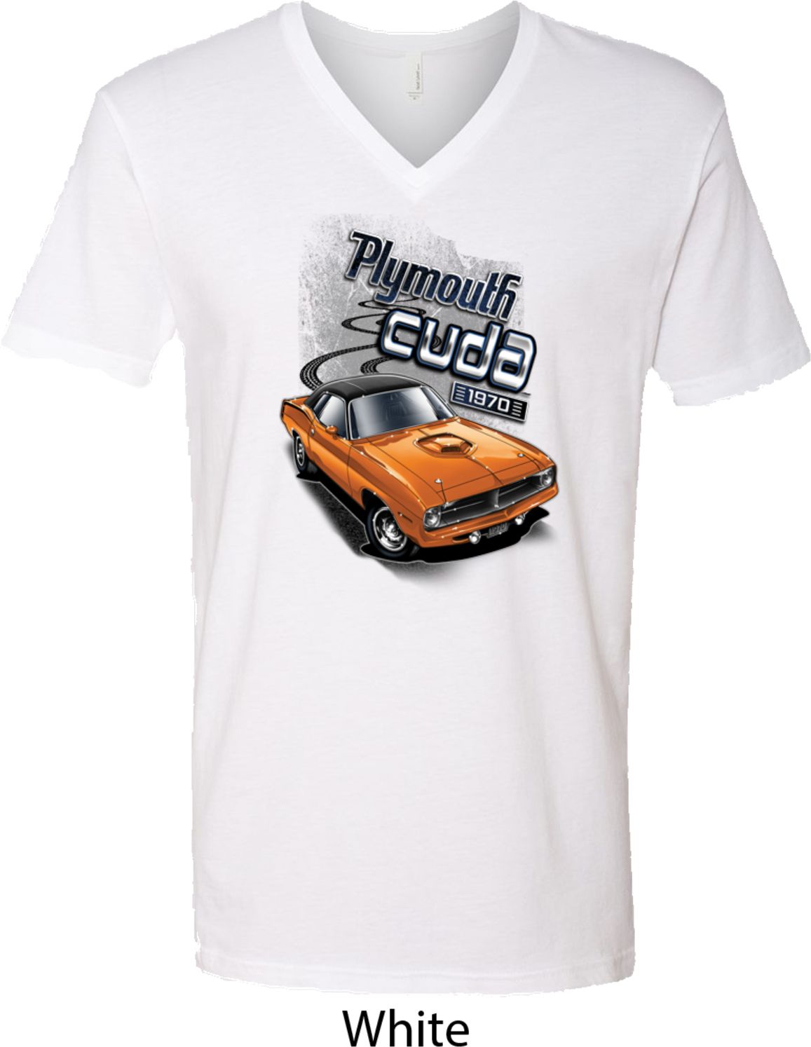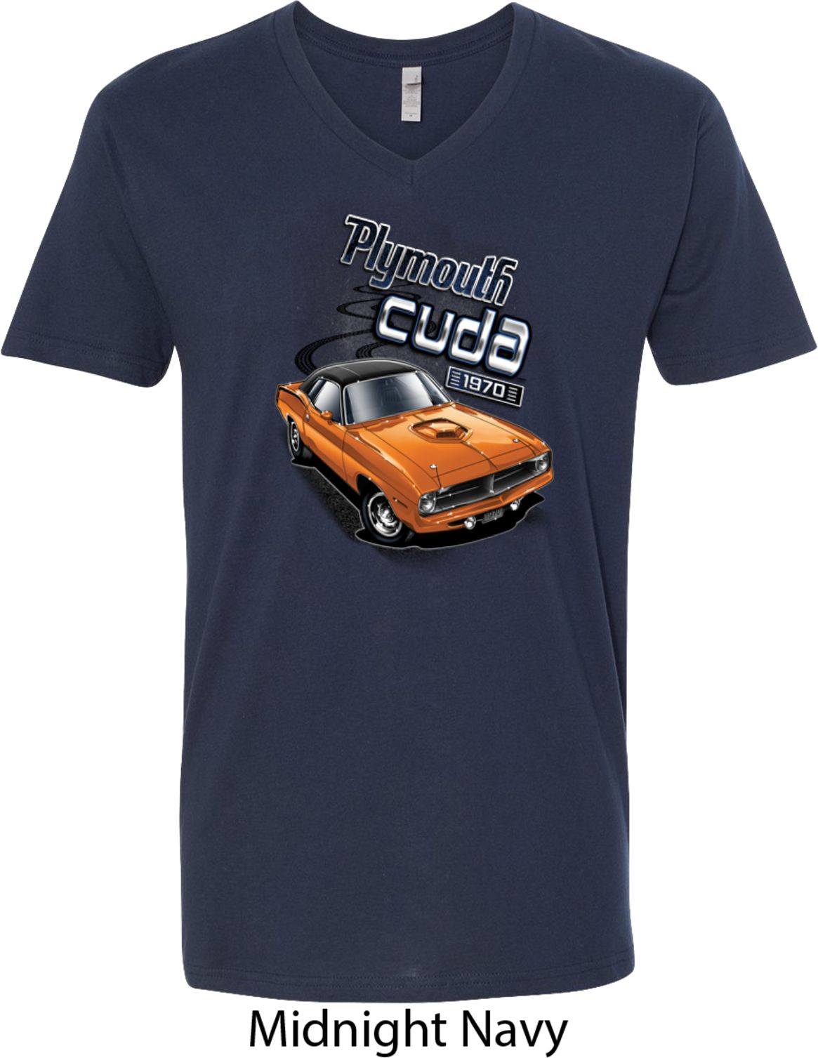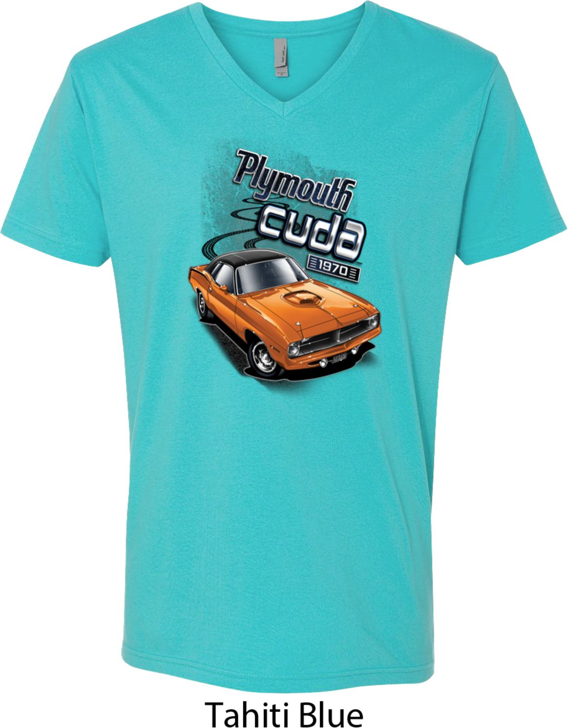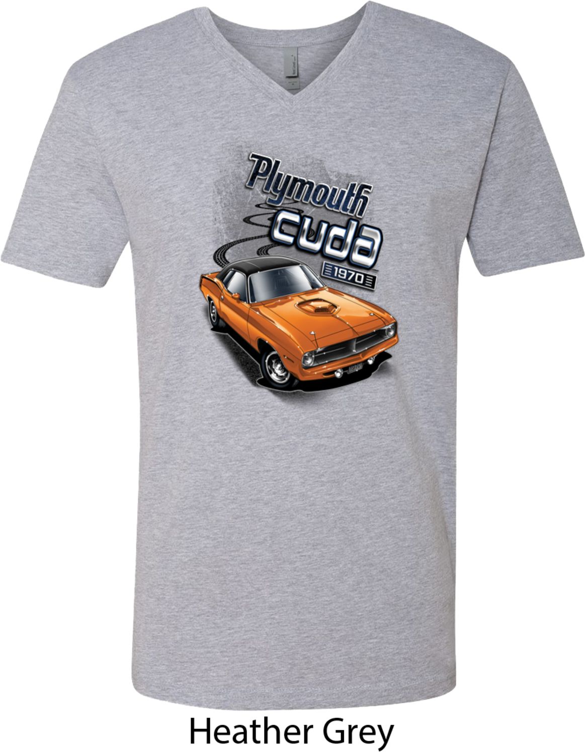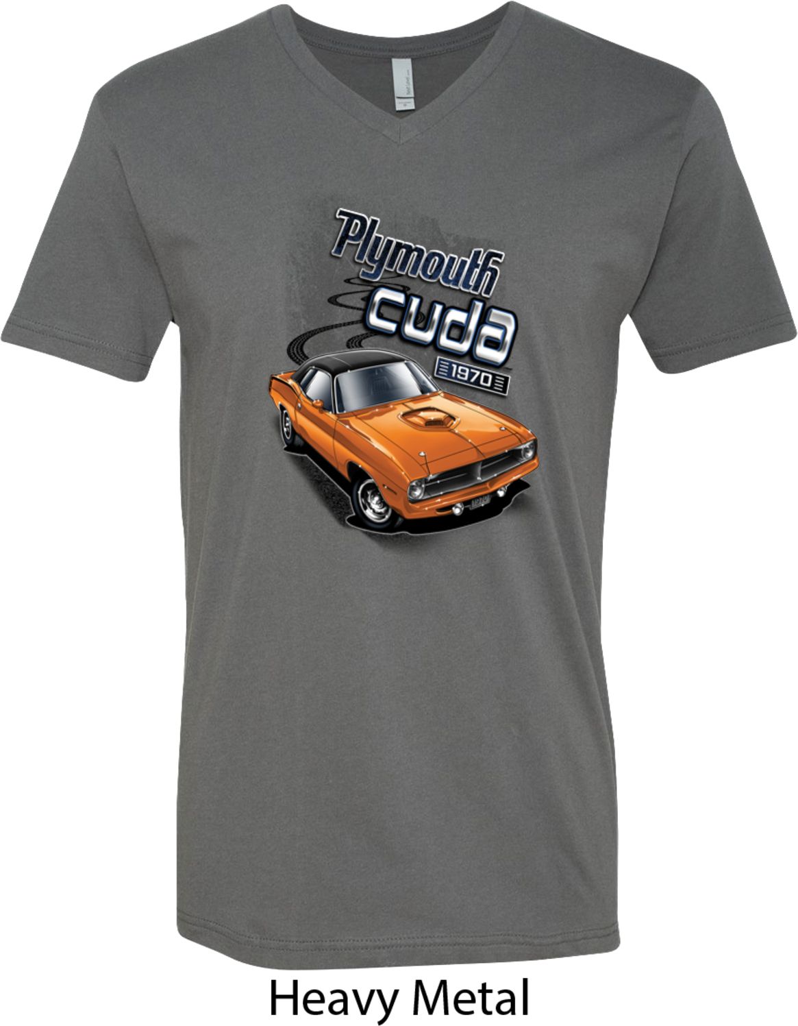 | | Dodge 1970 Plymouth Hemi Cuda Mens V-Neck ShirtDodge 1970 Plymouth Hemi Cuda Mens V-Neck Shirt A great shirt for someone who loves Dodge 100% cotton Heather Grey is a cotton/poly blend Available in Small, Medium, Large, XL & 2XL Also available in colors Black, Heather Grey, Heavy Metal, Indigo, Midnight, Tahiti, and White ![]() |