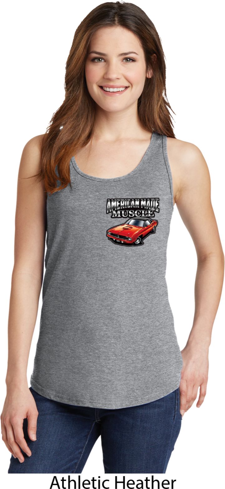 | | Dodge American Made Muscle Pocket Print Ladies Tank TopDodge American Made Muscle Pocket Print Ladies Tank Top A great shirt for someone who loves Dodge 100% cotton Neon and heather colors are a blend of cotton/poly Available in Ladies Small, Ladies Medium, Ladies Large, Ladies XL, Ladies 2XL, Ladies 3XL & Ladies 4XL Also available in colors Athletic Heather, Charcoal, Jet Black, Navy, Neon Blue, Neon Green, Neon Pink, Neon Yellow, Red, Royal, and White ![]() |