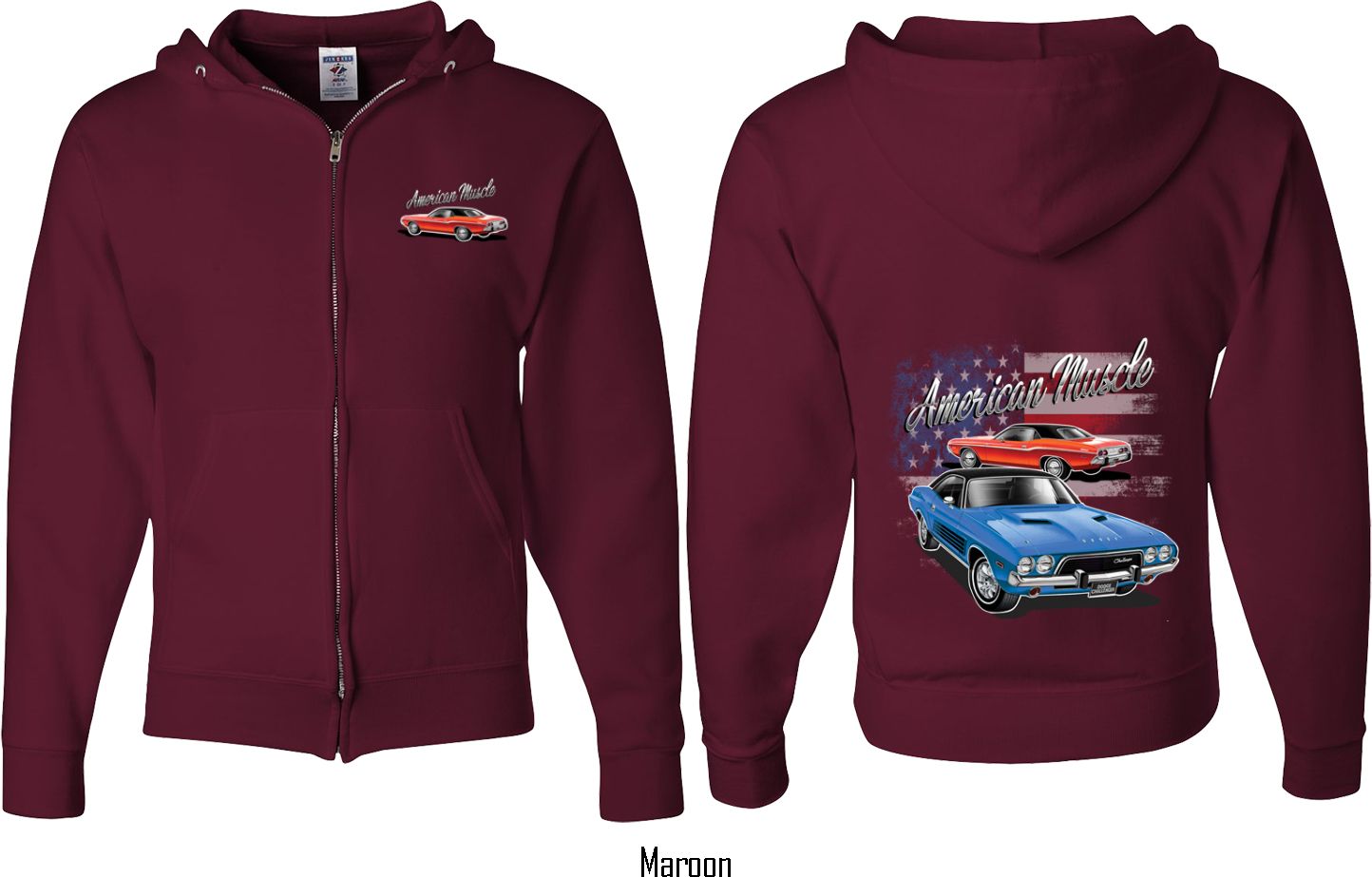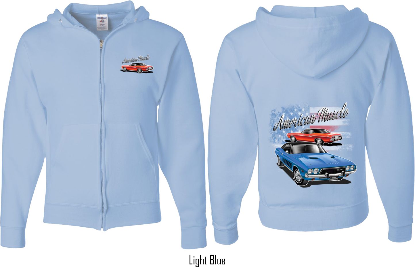 | | Dodge American Muscle Blue and Red (Front & Back) Full Zip HoodieA mens full zip hoodie featuring a red Dodge Challenger on the front and a blue and red American Muscle Dodge Challenger on the back. Our mens full zip is made with a blend of cotton/poly. Available in sizes Small through 3XL. Machine wash cold with like colors; dry low heat. ![]() |