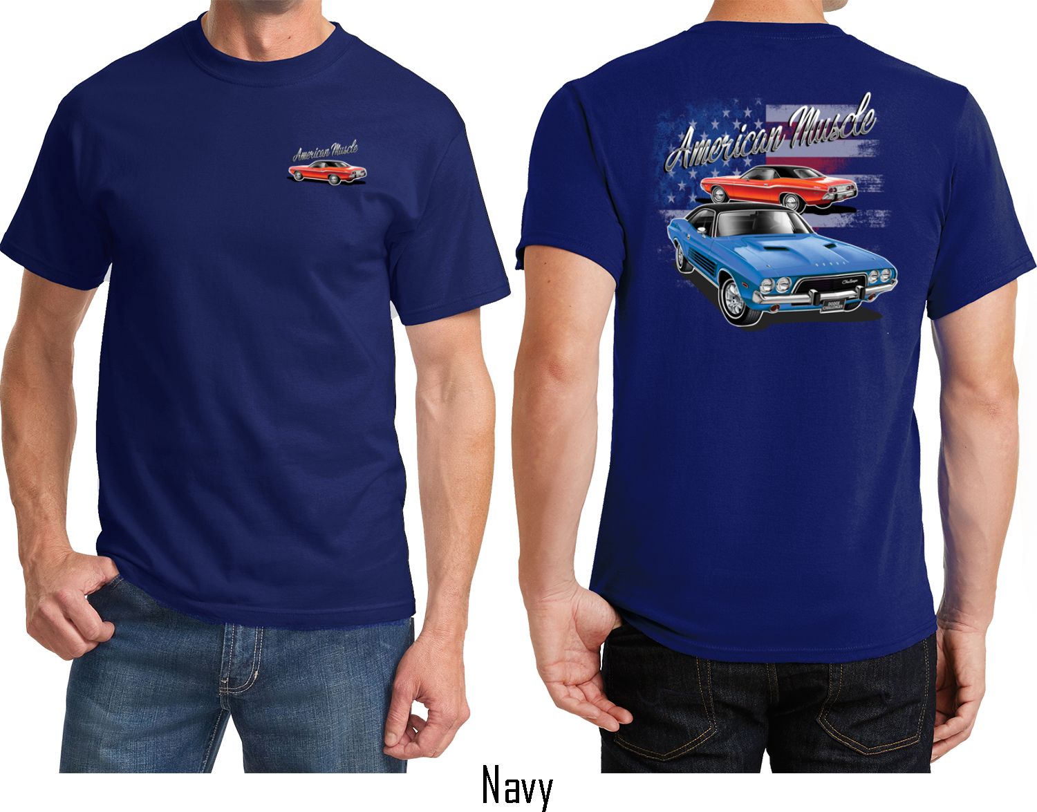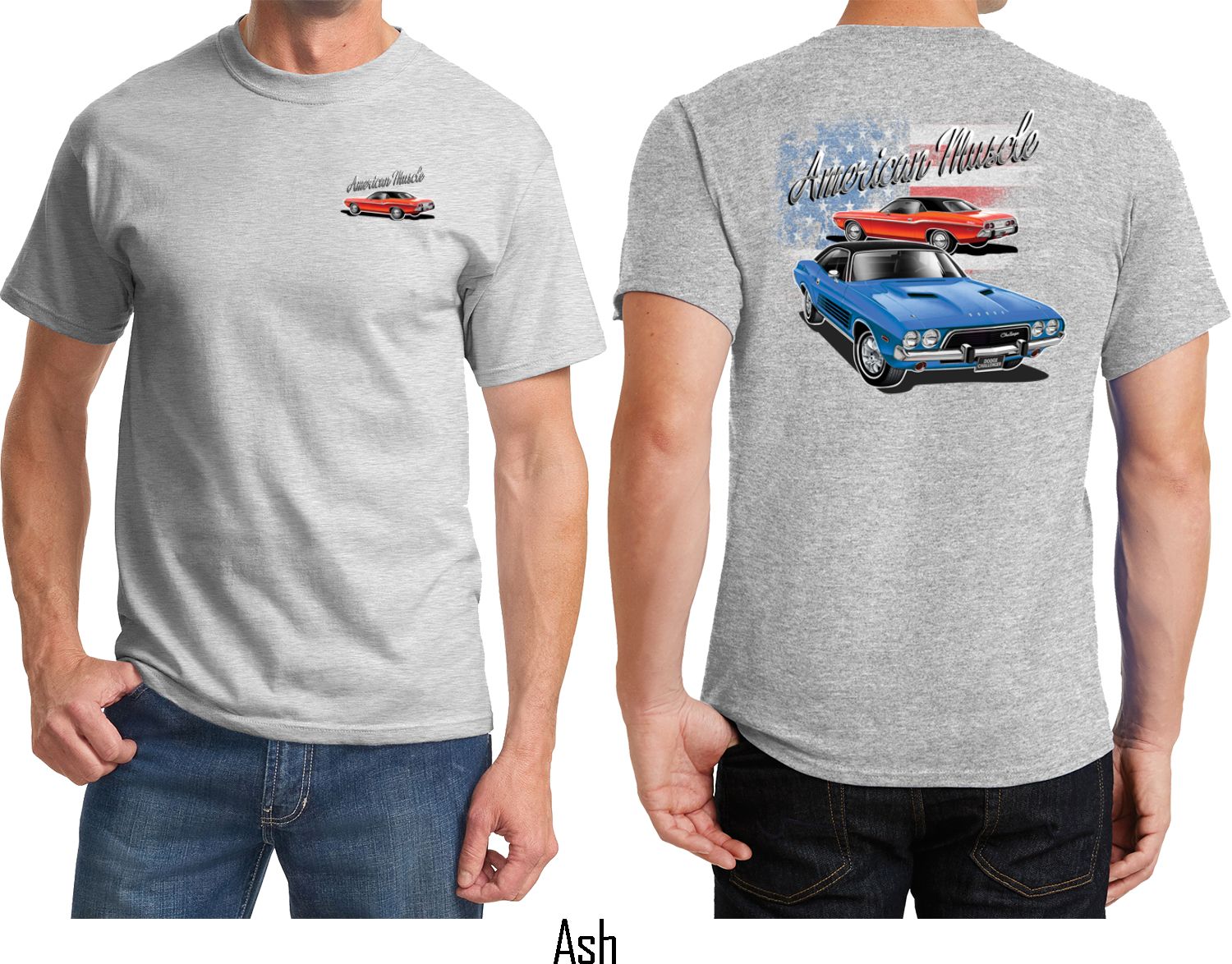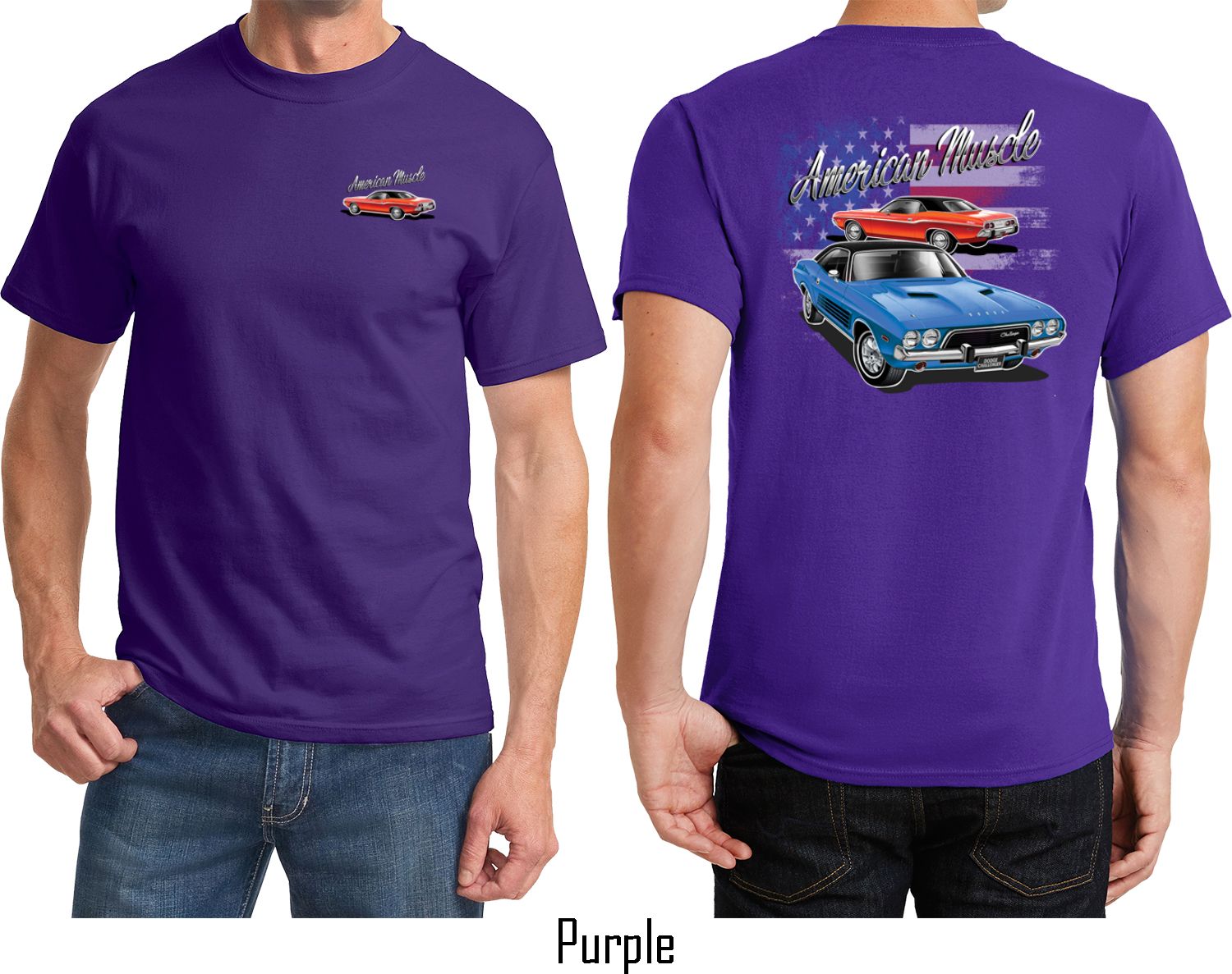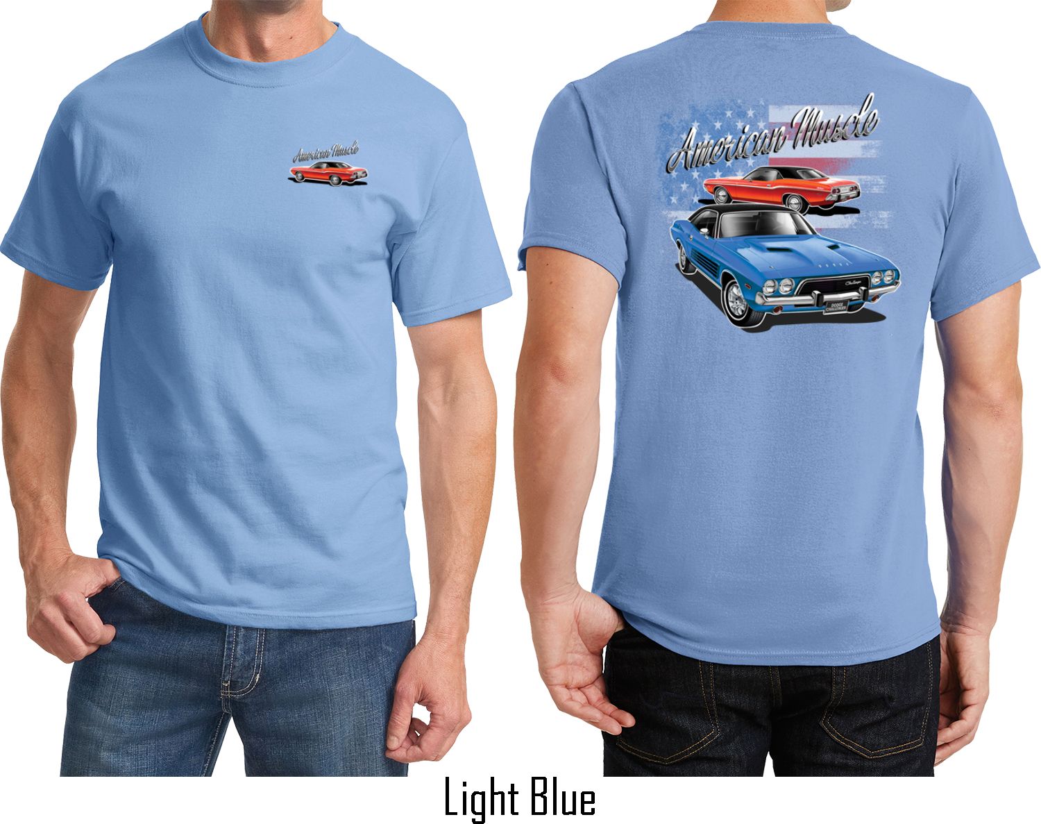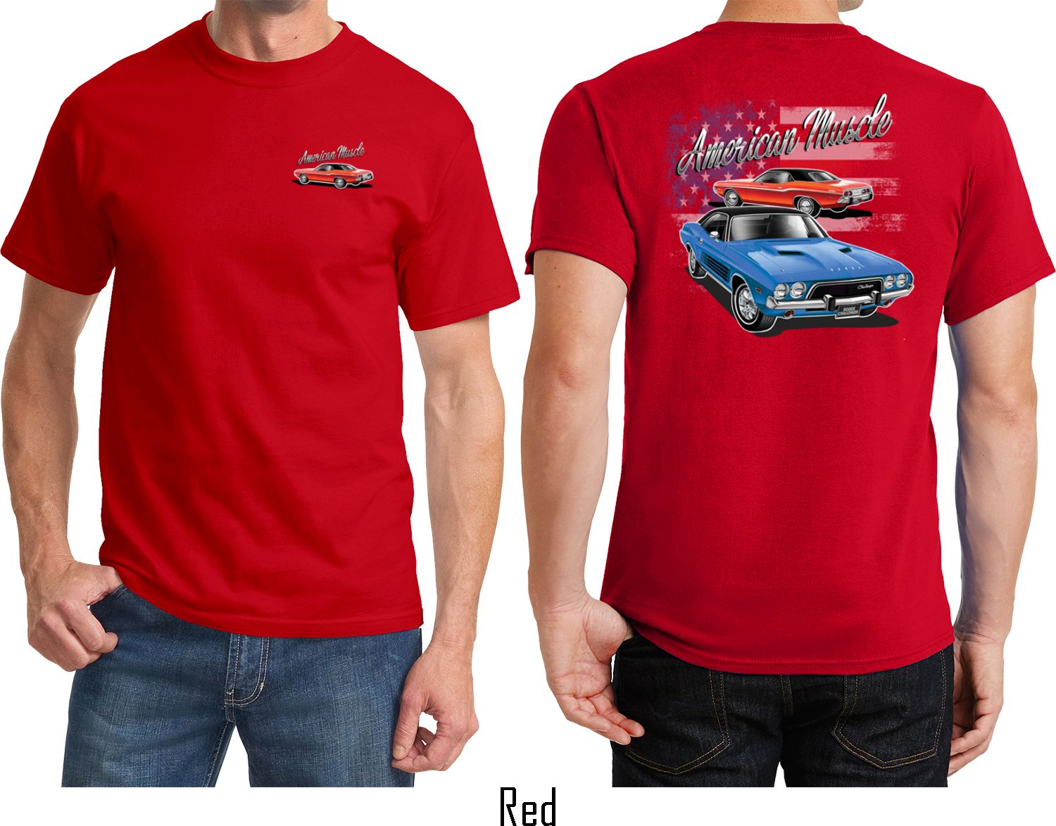 | | Dodge American Muscle Blue and Red (Front & Back) T-shirtA mens t-shirt featuring a red Dodge Challenger on the front and a blue and red American Muscle Dodge Challenger on the back. Our mens tee is made of 100% cotton. (Ash is made with a blend of cotton/poly) Available in sizes Small through 6XL. Machine wash cold with like colors; dry low heat. ![]() |